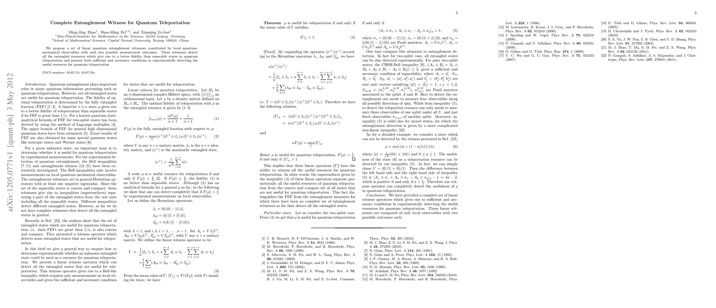 This paper proposes a set of linear quantum entanglement witnesses to detect entangled resources that enhance fidelity in quantum teleportation, providing both necessary and sufficient conditions for experimental detection of these resources.
