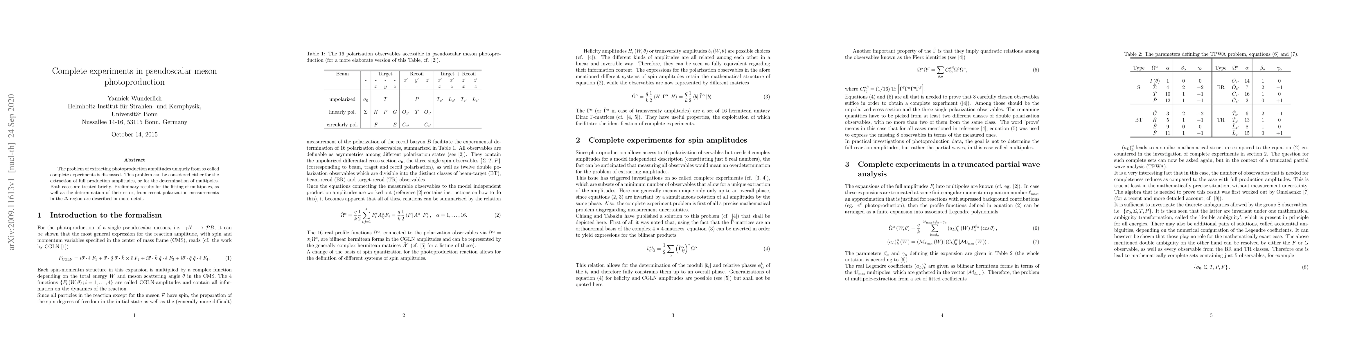 The problem of extracting photoproduction amplitudes uniquely from so called complete experiments is discussed. This problem can be considered either for the extraction of full production amplitudes, or for the determination of multipoles. Both cases are treated briefly. Preliminary results for the fitting of multipoles, as well as the determination of their error, from recent polarization measurements in the $\Delta$-region are described in more detail.