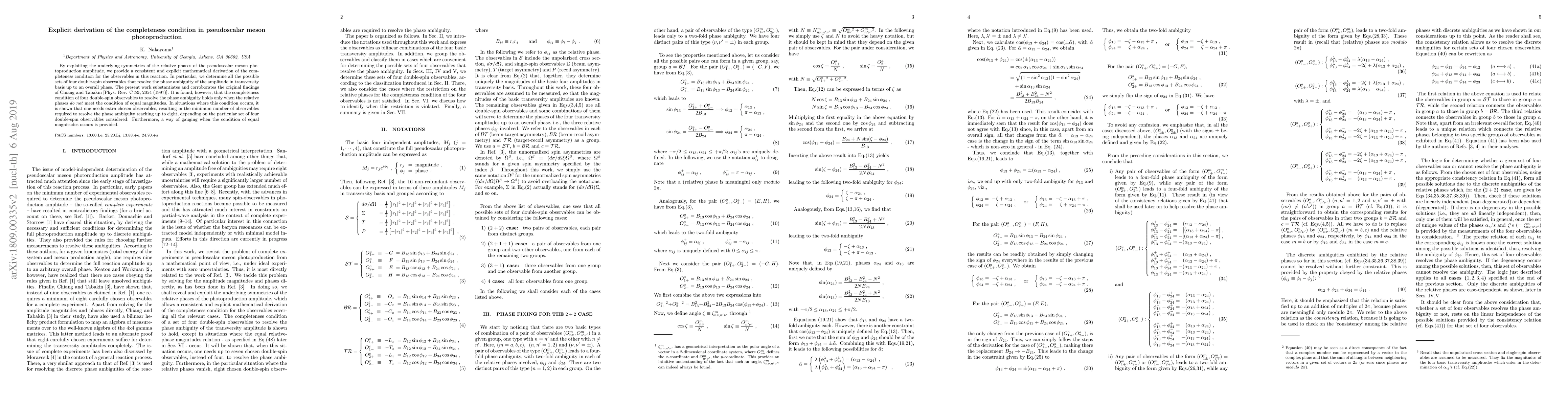 Researchers revisited pseudoscalar meson photoproduction experiments to resolve phase ambiguity using double-spin observables. They found that four observables can resolve the ambiguity if relative phases have equal magnitudes, but more are needed in other cases.