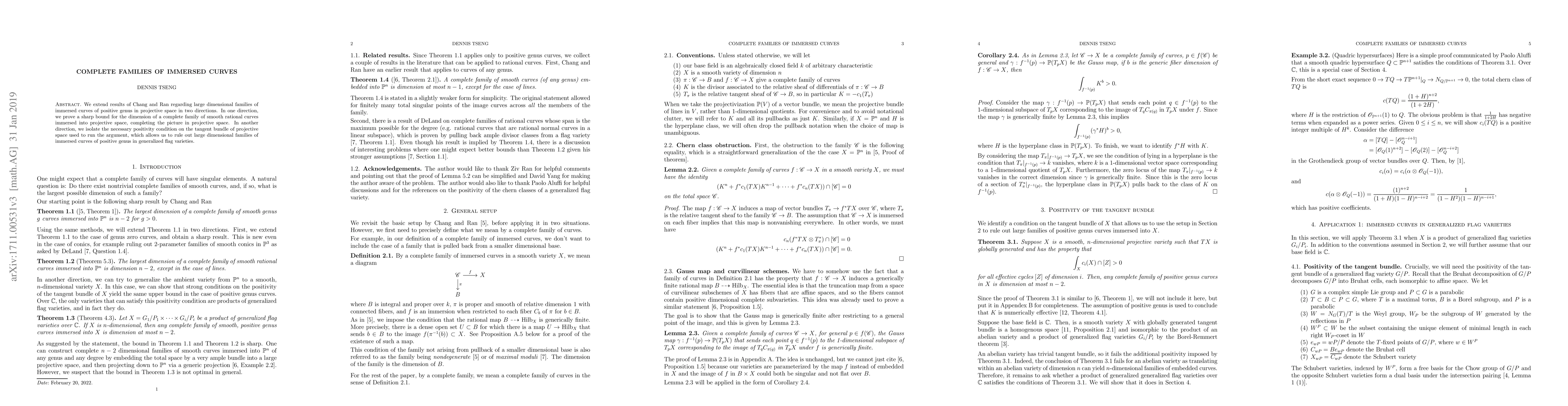 The research extends previous work by Chang and Ran, focusing on large dimensional families of immersed curves of positive genus in projective space and generalized flag varieties.