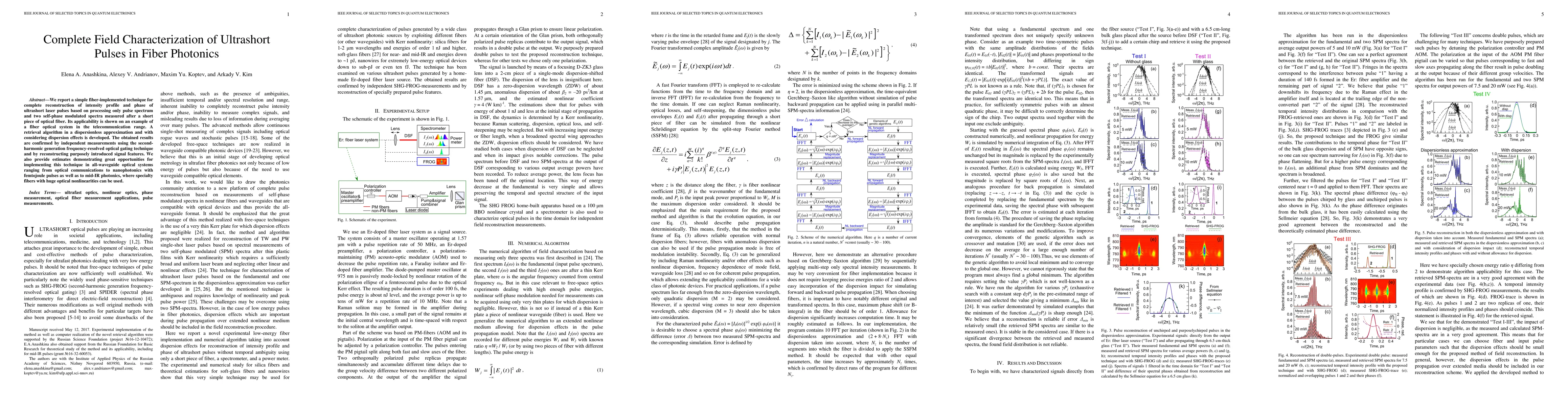 We report a simple fiber-implemented technique for complete reconstruction of intensity profile and phase of ultrashort laser pulses based on processing only pulse spectrum and two self-phase modulated spectra measured after a short piece of optical fiber. Its applicability is shown on an example of a fiber optical system in the telecommunication range. A retrieval algorithm in a dispersionless approximation and with considering dispersion effects is developed. The obtained results are confirmed by independent measurements using the second-harmonic generation frequency-resolved optical gating technique and by reconstructing purposely introduced signal features. We also provide estimates demonstrating great opportunities for implementing this technique in all-waveguide optical systems ranging from optical communications to nanophotonics with femtojoule pulses as well as to mid-IR photonics, where specialty fibers with huge optical nonlinearities can be used.