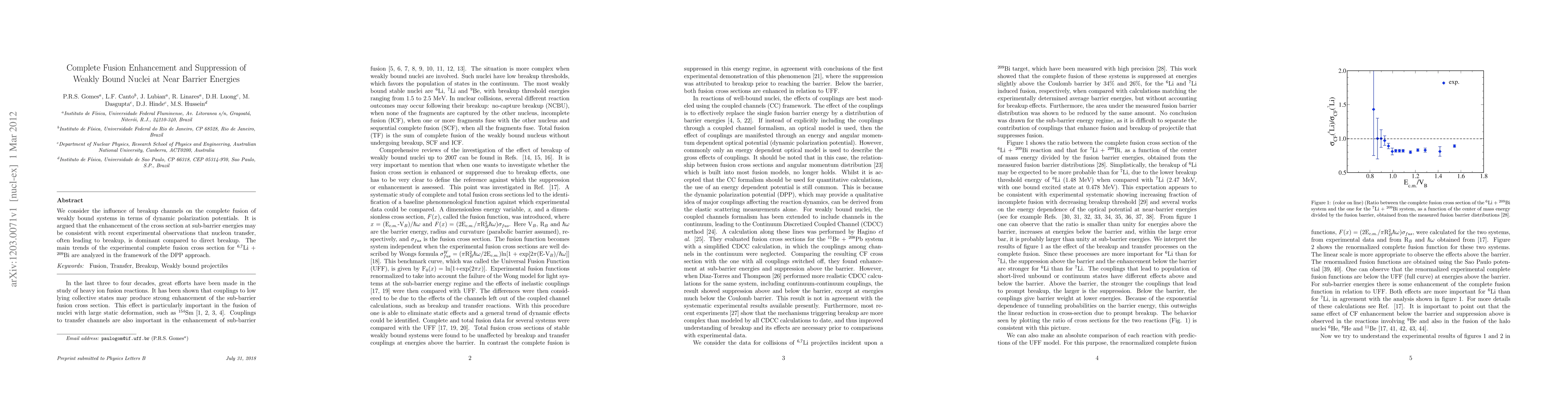 We consider the influence of breakup channels on the complete fusion of weakly bound systems in terms of dynamic polarization potentials. It is argued that the enhancement of the cross section at sub-barrier energies may be consistent with recent experimental observations that nucleon transfer, often leading to breakup, is dominant compared to direct breakup. The main trends of the experimental complete fusion cross section for $^{6,7}$Li + $^{209}$Bi are analyzed in the framework of the DPP approach.