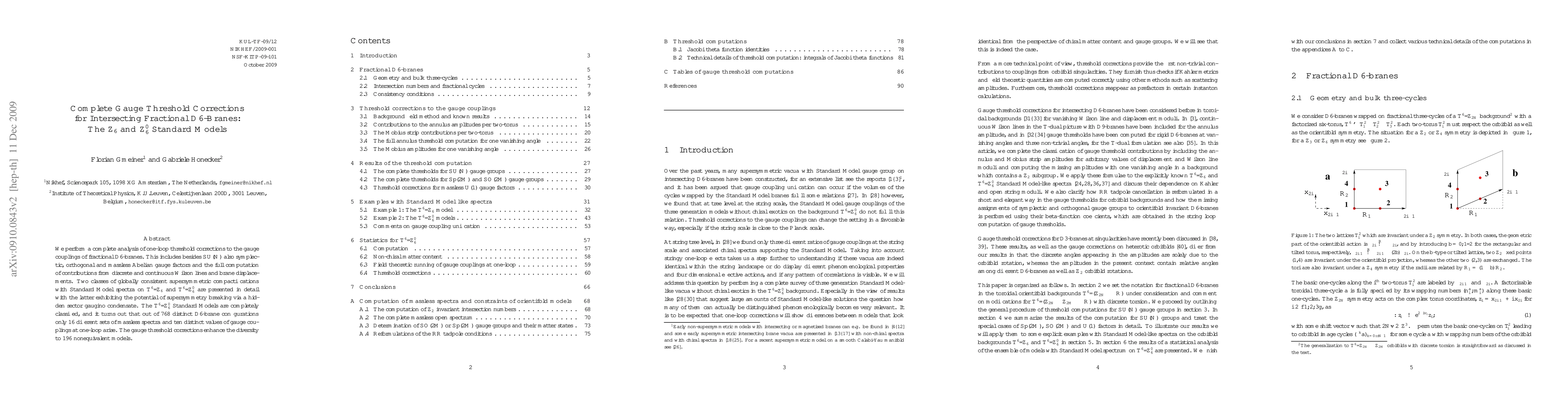 This paper provides a comprehensive analysis of one-loop gauge threshold corrections for fractional D6-branes, including various gauge factors and contributions from Wilson lines and brane displacements. It presents two supersymmetric compactifications on T6/Z6 and T6/Z6' Standard Models, revealing 16 distinct massless spectra and 10 gauge coupling values, with threshold corrections enhancing the model diversity to 196 nonequivalent configurations.