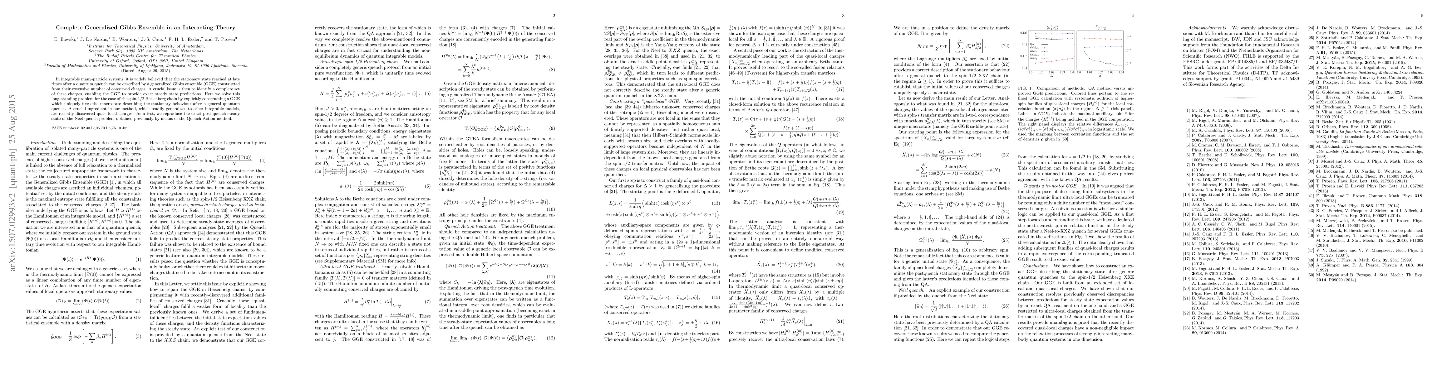 This paper constructs a complete generalized Gibbs ensemble (GGE) for the spin-1/2 Heisenberg chain, identifying a set of quasi-local charges to describe the exact stationary state after a quantum quench. The method generalizes to other integrable models and successfully reproduces the exact steady state of the Neel quench.