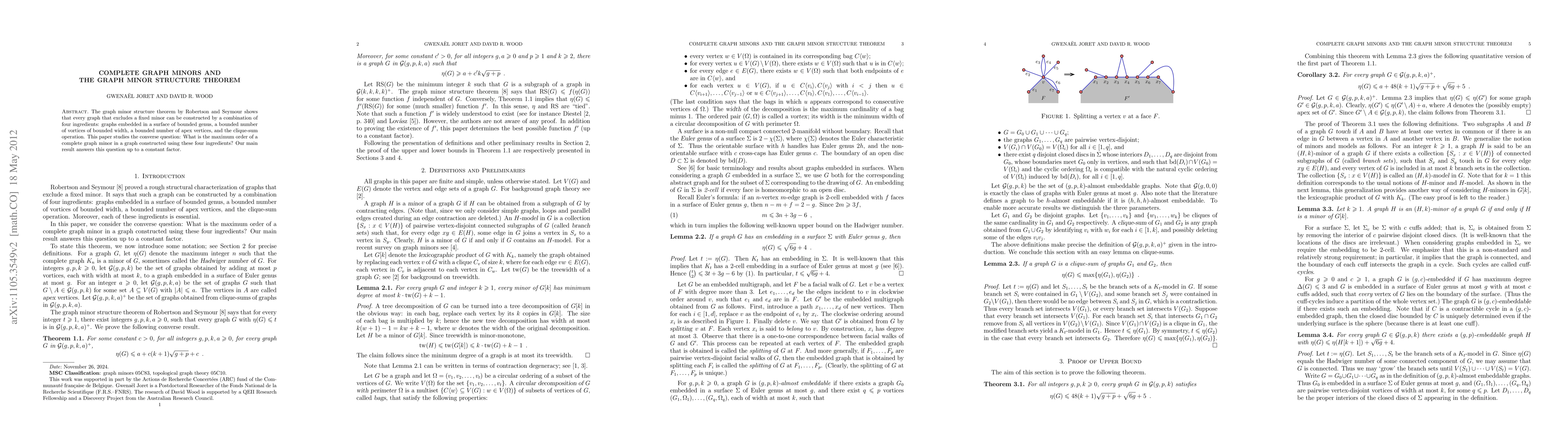 This paper investigates the maximum order of a complete graph minor in a graph constructed from four specified ingredients: graphs embedded in a surface of bounded genus, a bounded number of vortices, a bounded number of apex vertices, and the clique-sum operation. The authors determine this maximum order up to a constant factor.