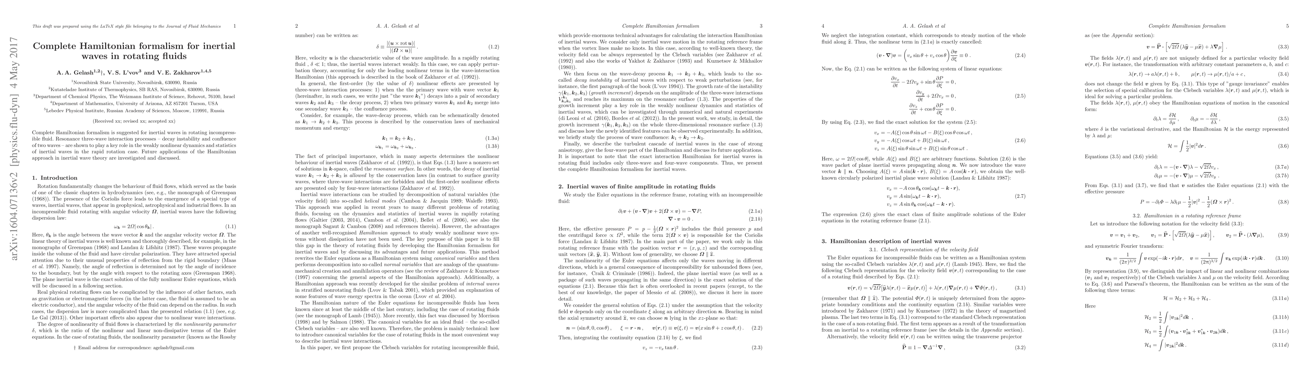 This paper proposes a complete Hamiltonian formalism for inertial waves in rotating incompressible fluids, highlighting the significance of resonance three-wave interactions in weakly nonlinear dynamics and statistics, and explores potential future applications of this approach.
