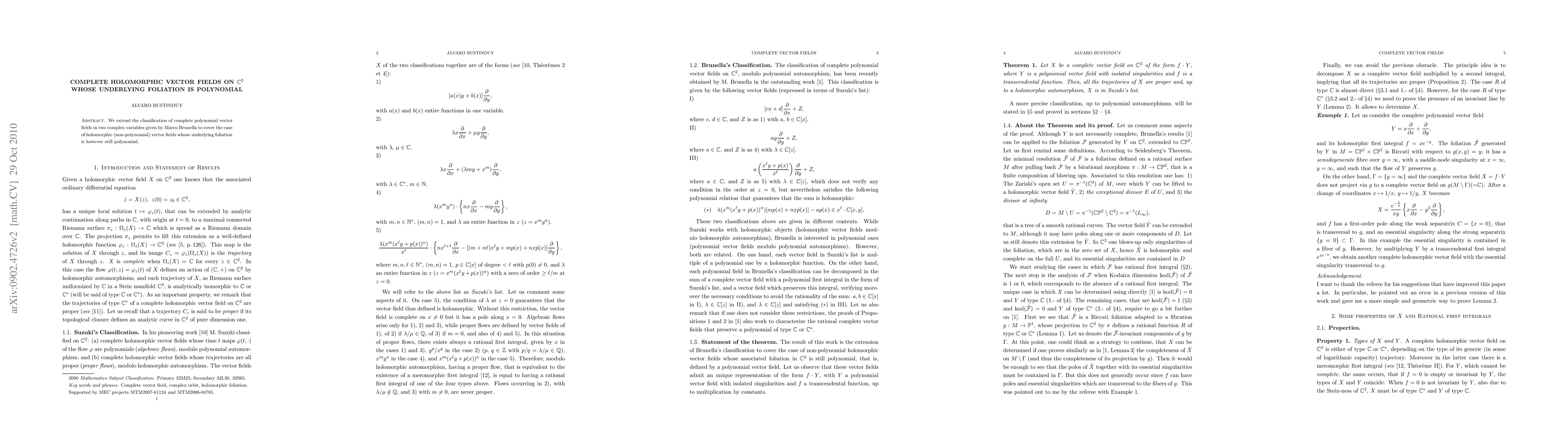 Summary: This paper extends Brunella's classification of complete polynomial vector fields on C^2 to include holomorphic vector fields that still produce polynomial foliations, broadening the understanding of complex dynamical systems in two dimensions.