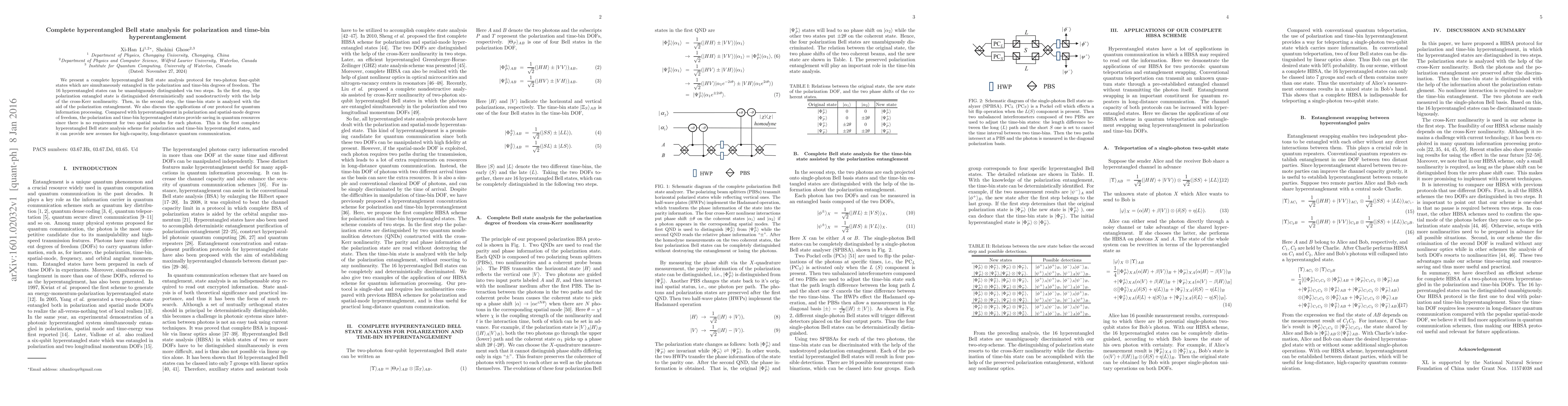 This paper introduces a complete protocol for analyzing hyperentangled Bell states in two-photon four-qubit systems entangled in both polarization and time-bin degrees. The protocol distinguishes the 16 hyperentangled states in two steps, offering potential for high-capacity, long-distance quantum communication with reduced quantum resource requirements.