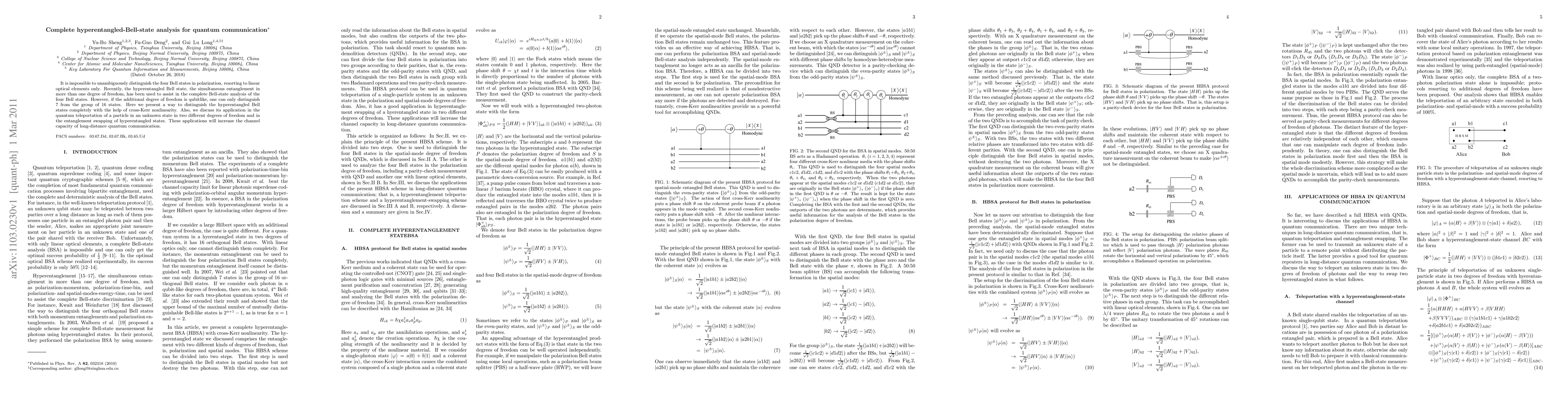 This paper proposes a method to completely distinguish hyperentangled Bell states using cross-Kerr nonlinearity, overcoming limitations of traditional linear optical elements. It also explores applications in quantum teleportation and entanglement swapping, enhancing long-distance quantum communication channel capacity.