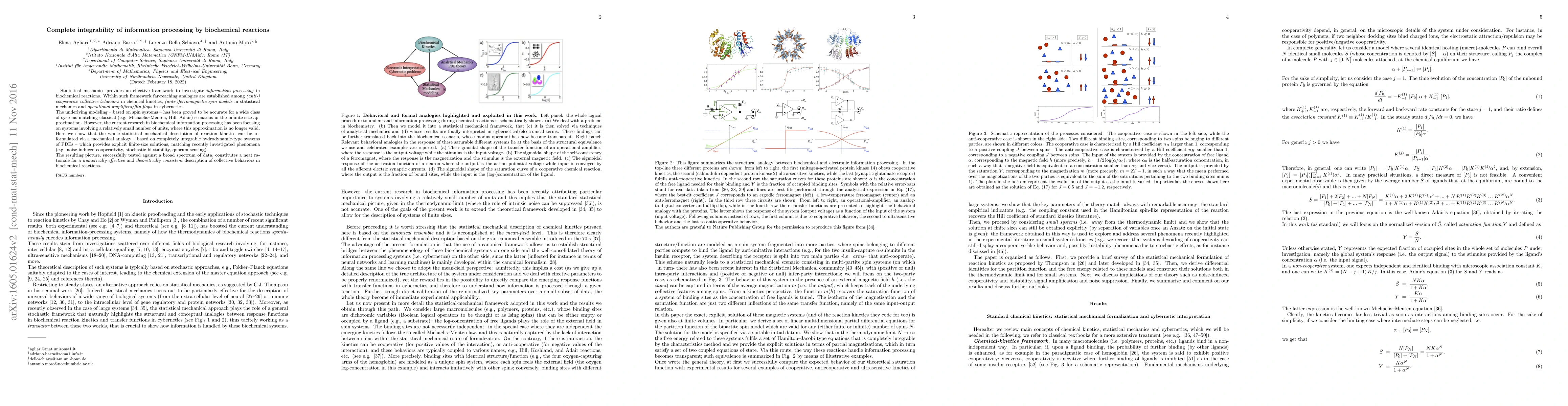 This paper demonstrates that statistical mechanics can be re-formulated using completely integrable hydrodynamic-type systems to accurately describe information processing in biochemical reactions, providing explicit finite-size solutions that match observed phenomena like noise-induced cooperativity and stochastic bi-stability. This new approach offers a numerically effective and theoretically consistent framework for understanding collective behaviors in biochemical systems.