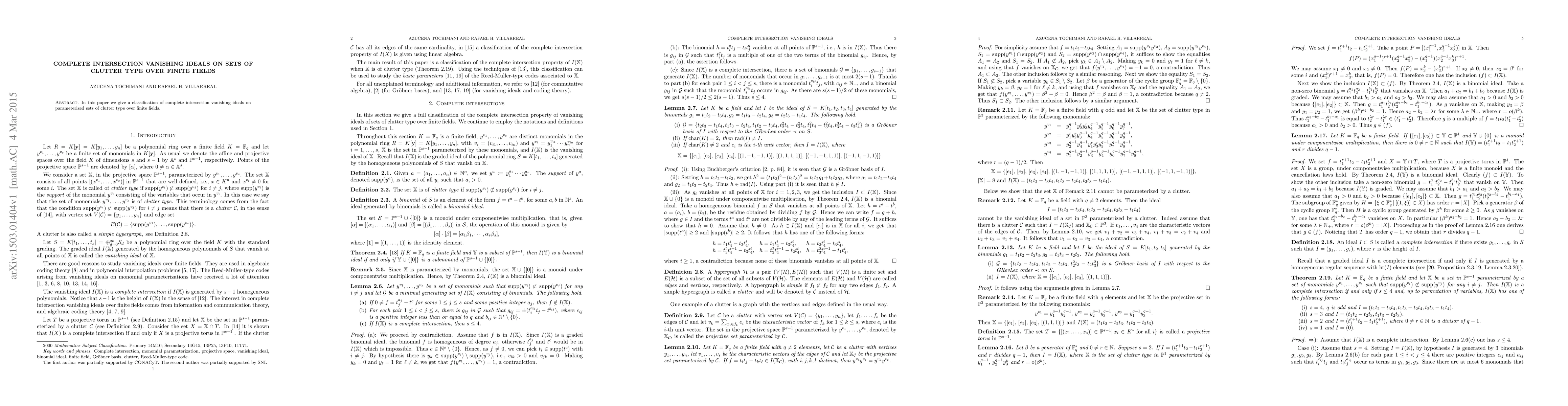 Summary: This paper classifies complete intersection vanishing ideals for parameterized sets defined by clutter type over finite fields, providing a detailed structural understanding of these mathematical objects.