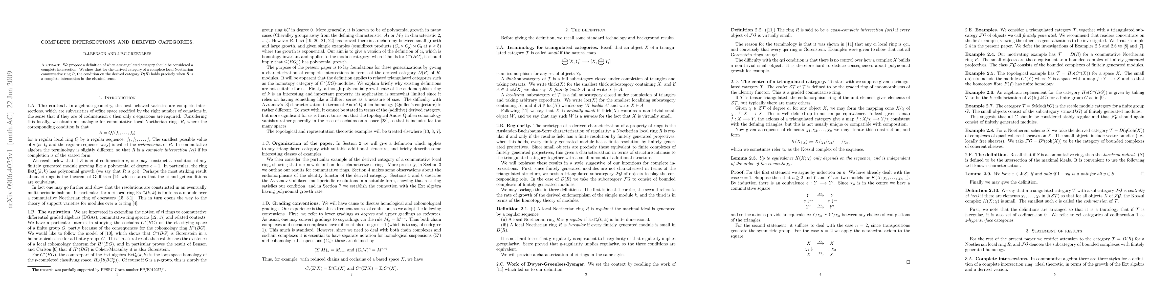 Summary: This paper introduces a new definition for a triangulated category to be a complete intersection and demonstrates that this condition in the derived category of a complete local Noetherian ring aligns with the classical notion of a complete intersection.