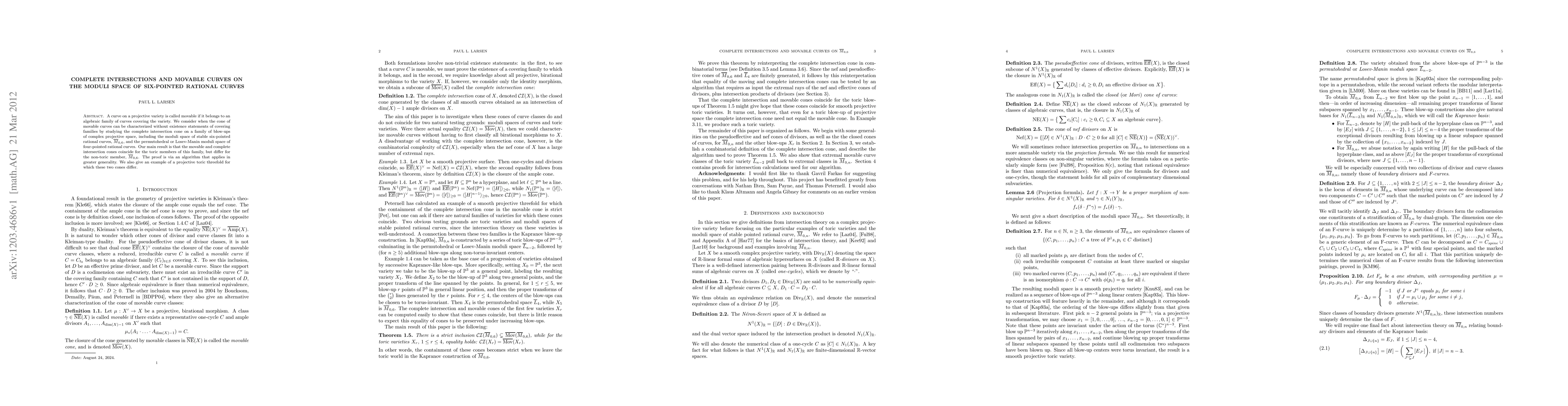 Summary: The paper explores the relationship between movable curves and complete intersection curves on the moduli space of six-pointed rational curves, demonstrating that these two types of curves coincide for toric members but differ for non-toric members, using an algorithmic proof applicable in broader contexts.