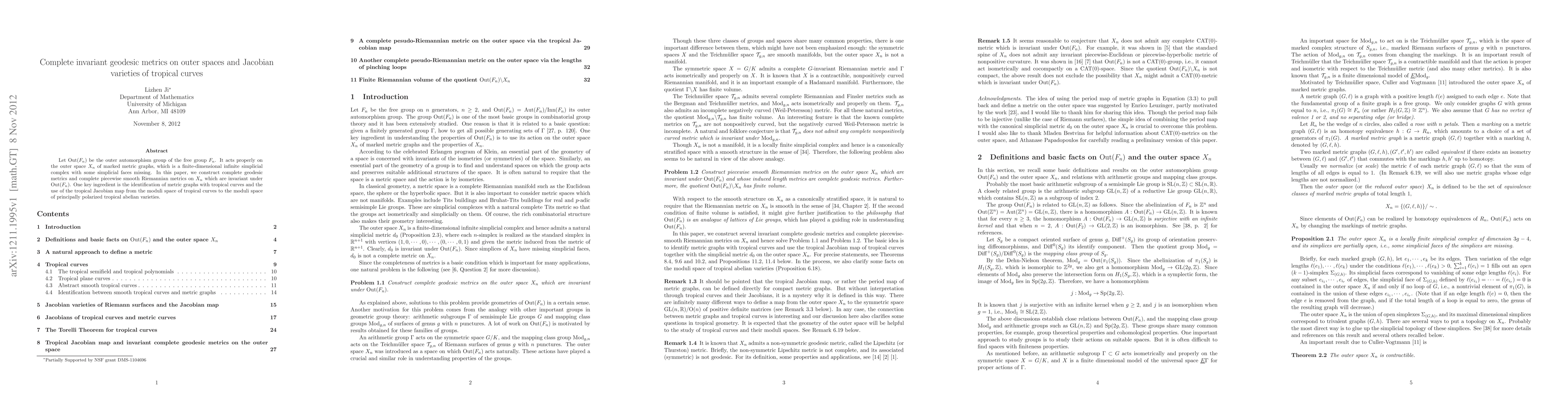 Researchers developed complete invariant geodesic metrics on outer spaces and Jacobian varieties of tropical curves, enabling a new understanding of the interaction between algebraic and geometric structures in mathematics.