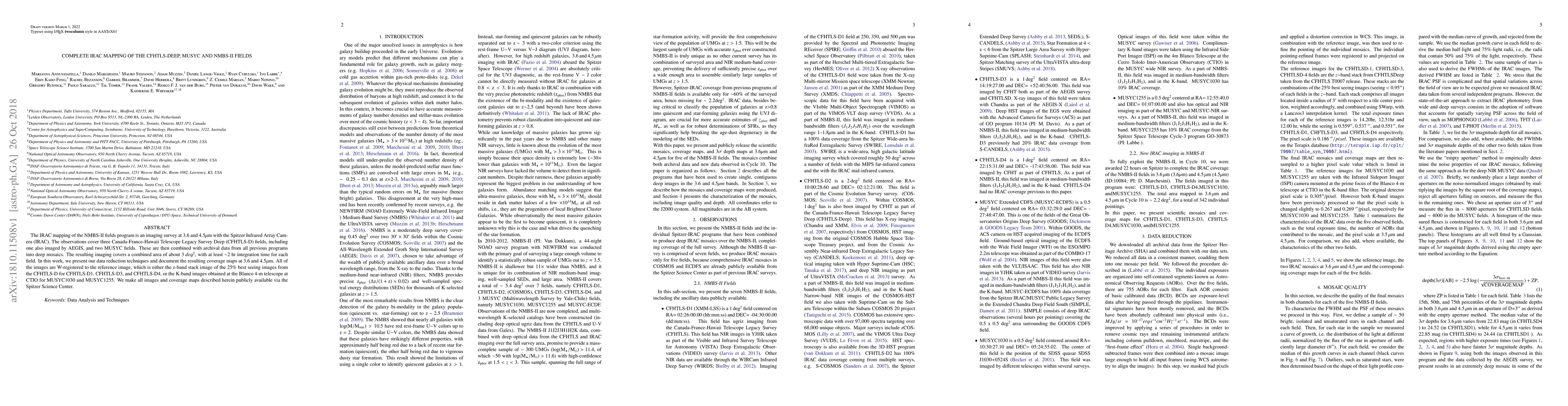 This paper details the data reduction techniques and coverage maps for the IRAC imaging survey at 3.6 and 4.5 µm of three CFHTLS-DEEP, two MUSYC fields, and NMBS-II fields, combining them into deep mosaics covering a total area of about 3 deg². The images are W-registered to reference images and are publicly available.