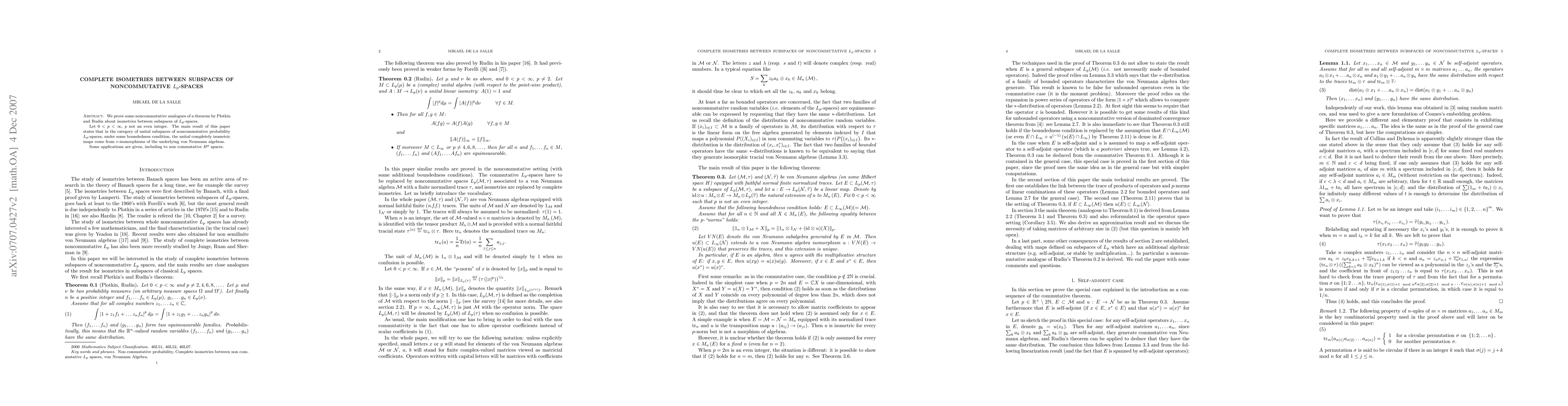 This paper establishes noncommutative analogues of Plotkin and Rudin's theorem on isometries between subspaces of Lp-spaces, showing that unital completely isometric maps between unital subspaces of noncommutative Lp-spaces arise from *-isomorphisms of underlying von Neumann algebras. Applications to noncommutative H^p spaces are also presented.