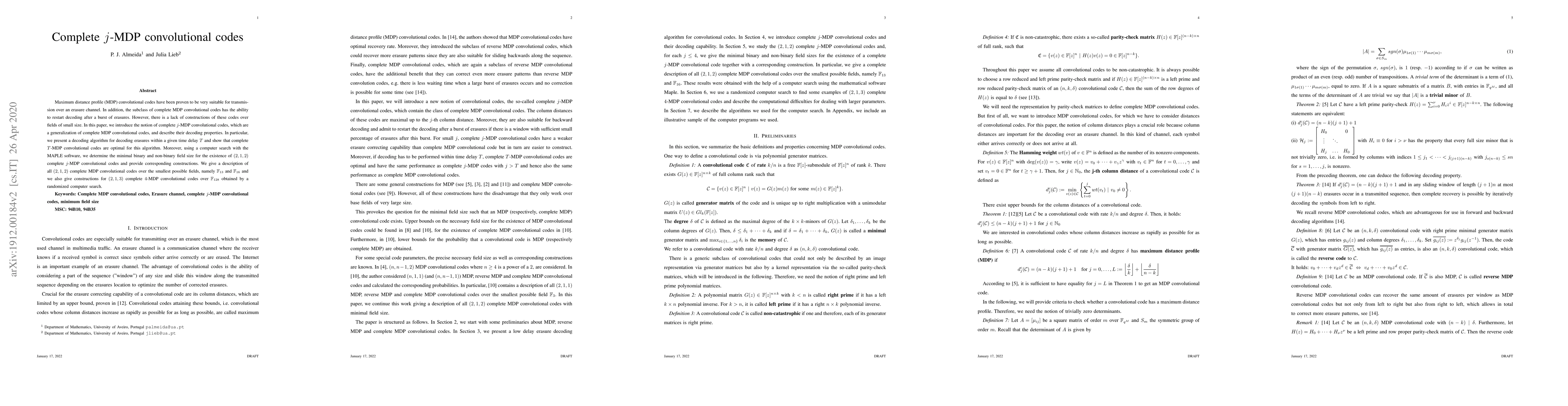 This paper introduces complete j-MDP convolutional codes, a generalization of complete MDP convolutional codes, and presents a decoding algorithm for handling erasures within a specified time delay. The study determines minimal field sizes for the existence of specific complete j-MDP convolutional codes and provides constructions for these codes over small fields.