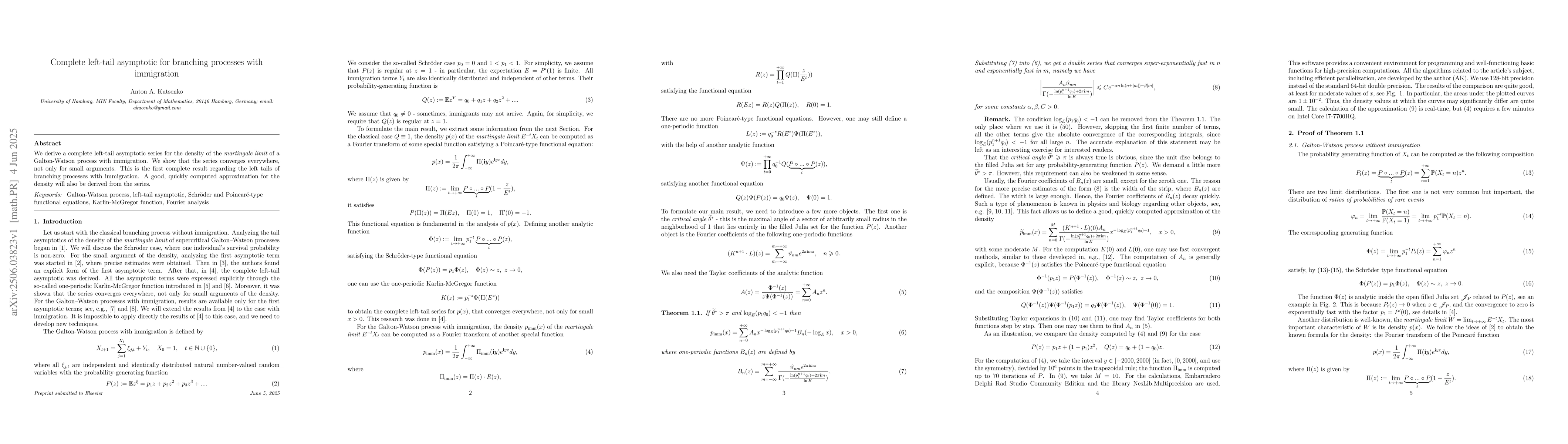 The research derives a complete left-tail asymptotic series for the density of the martingale limit of a Galton-Watson process with immigration, showing convergence everywhere for all argument sizes.
