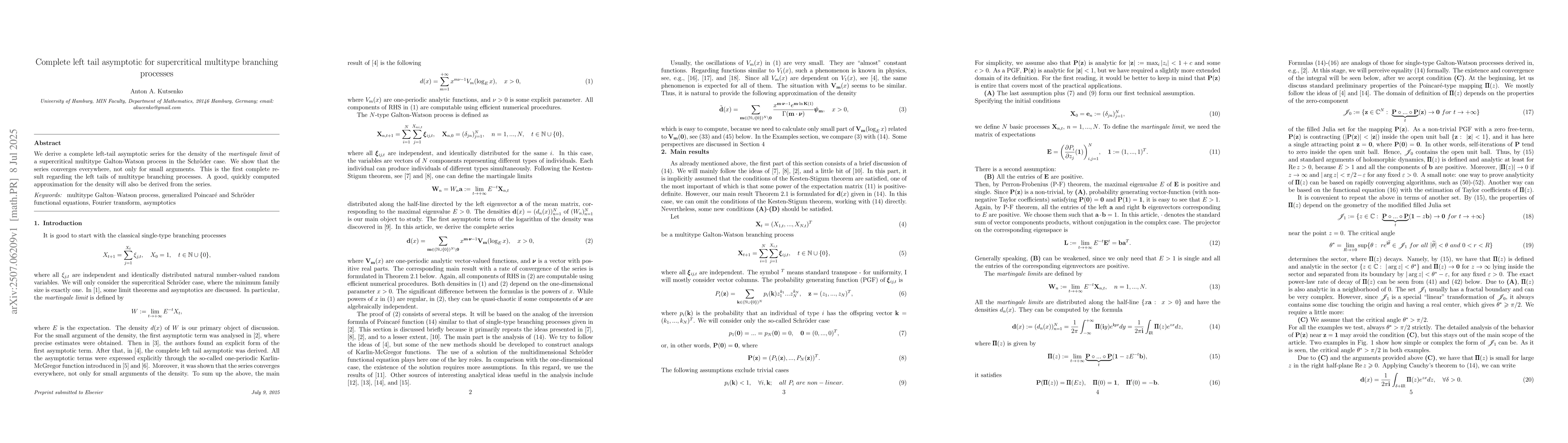 We derive a complete left-tail asymptotic series for the density of the {\it martingale limit} of a supercritical multitype Galton-Watson process in the Schr\"oder case. We show that the series converges everywhere, not only for small arguments. This is the first complete result regarding the left tails of multitype branching processes. A good, quickly computed approximation for the density will also be derived from the series.