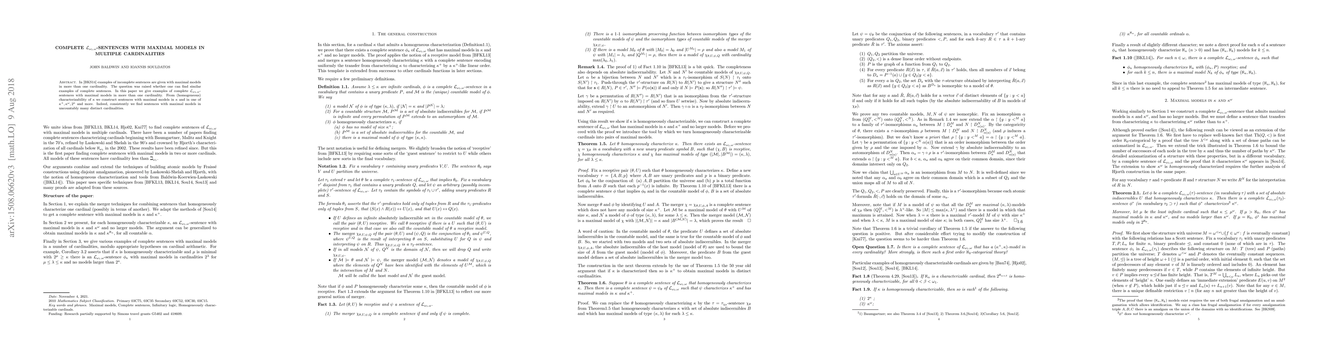 In [BKS15] examples of incomplete sentences are given with maximal models in more than one cardinality. The question was raised whether one can find similar examples of complete sentences. In this paper we give examples of complete $L_{\omega_1,\omega}$-sentences with maximal models in more than one cardinality. From (homogeneous) characterizability of $\kappa$ we construct sentences with maximal models in $\kappa$ and in one of $\kappa^+, \kappa^\omega, 2^\kappa$ and more. Indeed, consistently we find sentences with maximal models in uncountably many distinct cardinalities.
