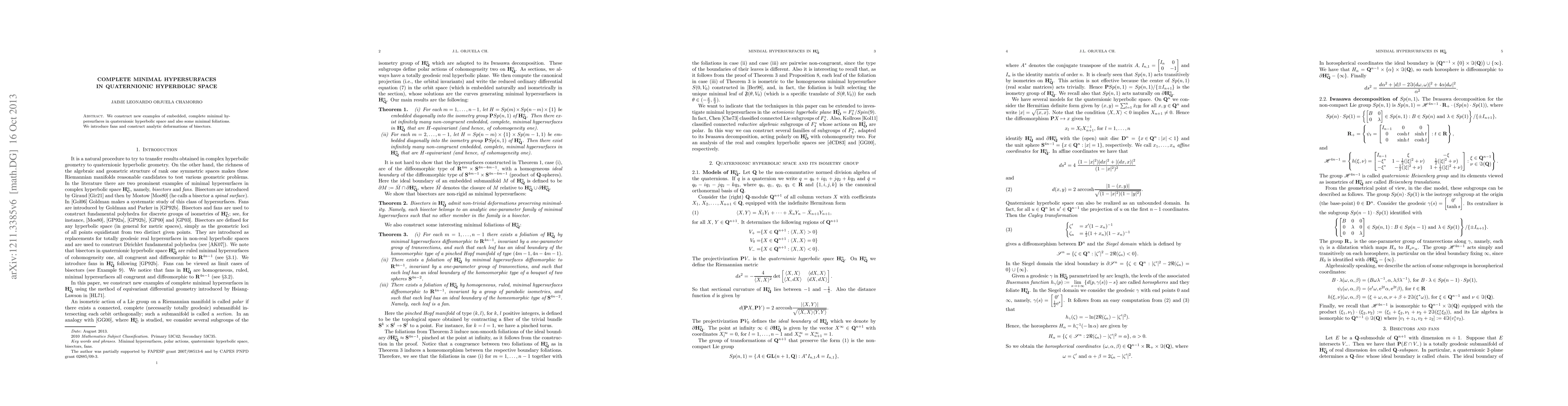 Summary: This paper constructs new examples of embedded, complete minimal hypersurfaces in quaternionic hyperbolic space and explores minimal foliations, introducing fans and analytic deformations of bisectors.