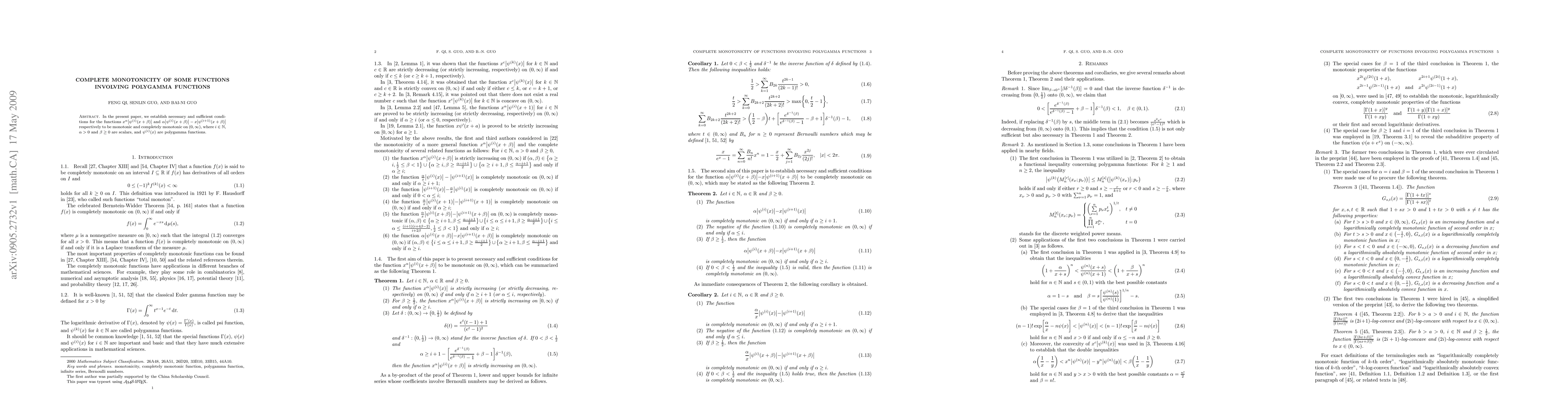 This paper determines the necessary and sufficient conditions for specific functions involving polygamma functions to be monotonic and completely monotonic on the interval (0, ∞). The functions in question are $x^\alpha\bigl\lvert\psi^{(i)}(x+\beta)\bigr\lvert$ and $\alpha\bigl\lvert\psi^{(i)}(x+\beta)\bigr\lvert-x\bigl\lvert\psi^{(i+1)}(x+\beta)\bigr\lvert$.