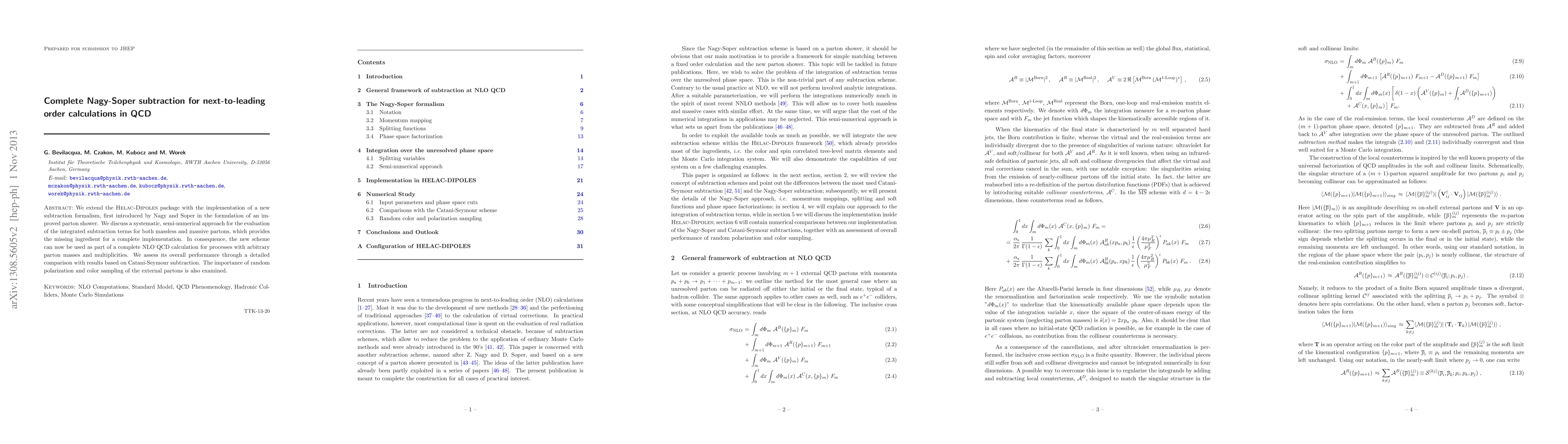 We extend the Helac-Dipoles package with the implementation of a new subtraction formalism, first introduced by Nagy and Soper in the formulation of an improved parton shower. We discuss a systematic, semi-numerical approach for the evaluation of the integrated subtraction terms for both massless and massive partons, which provides the missing ingredient for a complete implementation. In consequence, the new scheme can now be used as part of a complete NLO QCD calculation for processes with arbitrary parton masses and multiplicities. We assess its overall performance through a detailed comparison with results based on Catani-Seymour subtraction. The importance of random polarization and color sampling of the external partons is also examined.