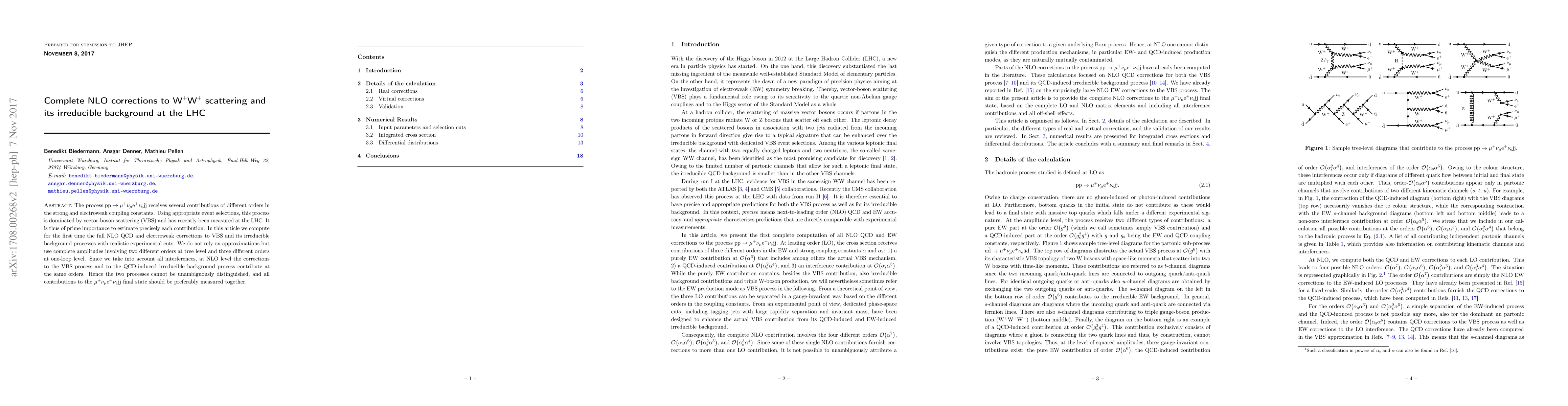 Researchers computed NLO QCD and electroweak corrections to a specific LHC process, finding that the corrections from vector-boson scattering and its irreducible background contribute at the same orders, making it difficult to distinguish between them.