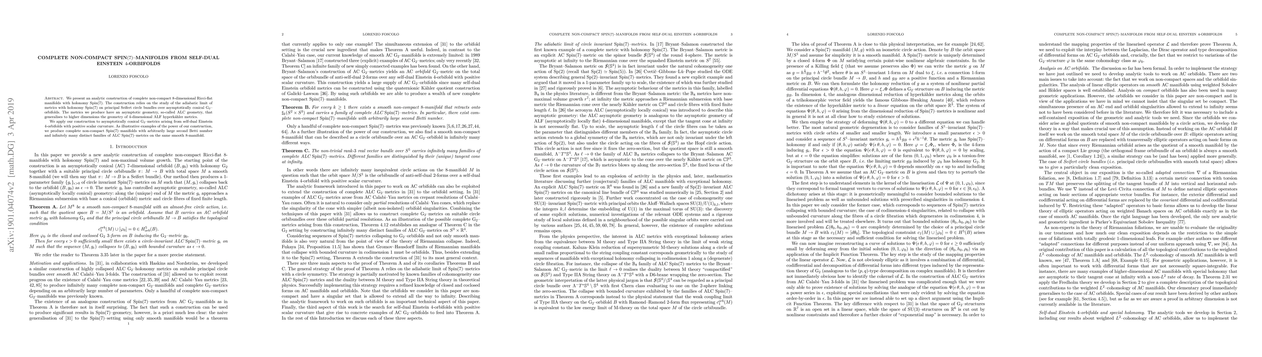 This paper constructs complete non-compact 8-dimensional Ricci-flat manifolds with Spin(7) holonomy by analyzing the adiabatic limit of metrics on Seifert bundles over G2 orbifolds. The resulting ALC geometry generalizes 4-dimensional ALF hyperkähler metrics and applies to self-dual Einstein 4-orbifolds, producing manifolds with large second Betti numbers and multiple distinct metric families.