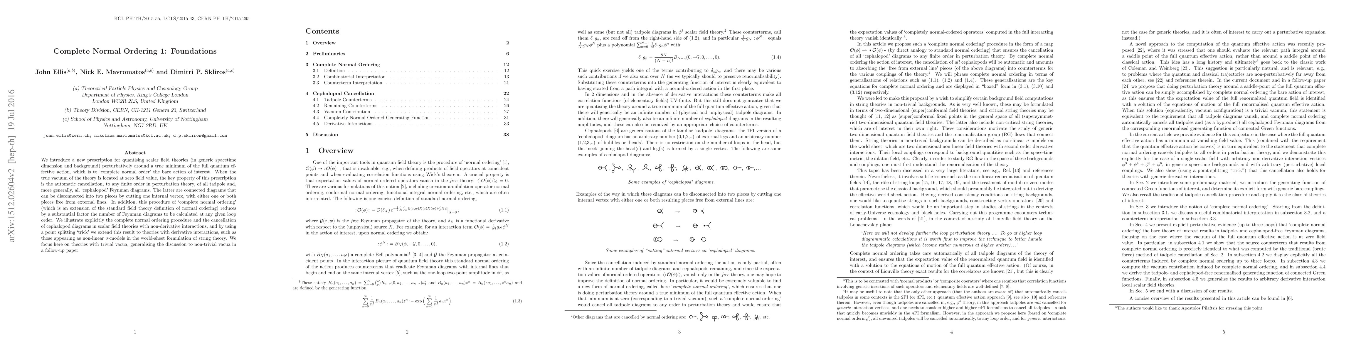 We introduce a new prescription for quantising scalar field theories perturbatively around a true minimum of the full quantum effective action, which is to `complete normal order' the bare action of interest. When the true vacuum of the theory is located at zero field value, the key property of this prescription is the automatic cancellation, to any finite order in perturbation theory, of all tadpole and, more generally, all `cephalopod' Feynman diagrams. The latter are connected diagrams that can be disconnected into two pieces by cutting one internal vertex, with either one or both pieces free from external lines. In addition, this procedure of `complete normal ordering' (which is an extension of the standard field theory definition of normal ordering) reduces by a substantial factor the number of Feynman diagrams to be calculated at any given loop order. We illustrate explicitly the complete normal ordering procedure and the cancellation of cephalopod diagrams in scalar field theories with non-derivative interactions, and by using a point splitting `trick' we extend this result to theories with derivative interactions, such as those appearing as non-linear sigma-models in the world-sheet formulation of string theory. We focus here on theories with trivial vacua, generalising the discussion to non-trivial vacua in a follow-up paper.