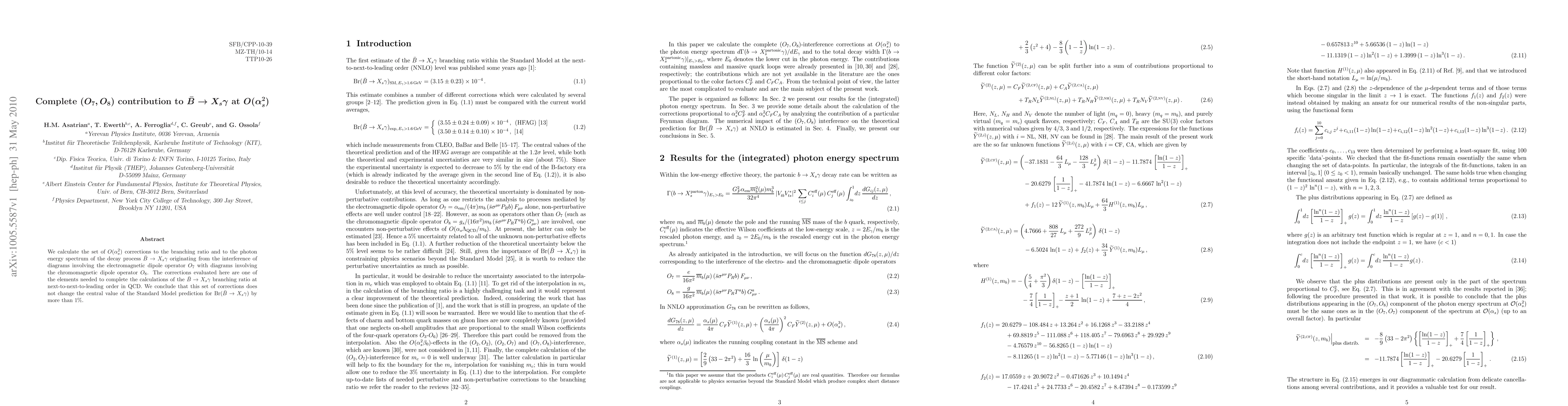 This paper calculates the O(α_s^2) corrections to the branching ratio and photon energy spectrum for the decay process B -> X_s gamma, focusing on the interference between electromagnetic and chromomagnetic dipole operators. The results complete the next-to-next-to-leading order QCD calculations for this process, showing minimal impact on the Standard Model prediction.