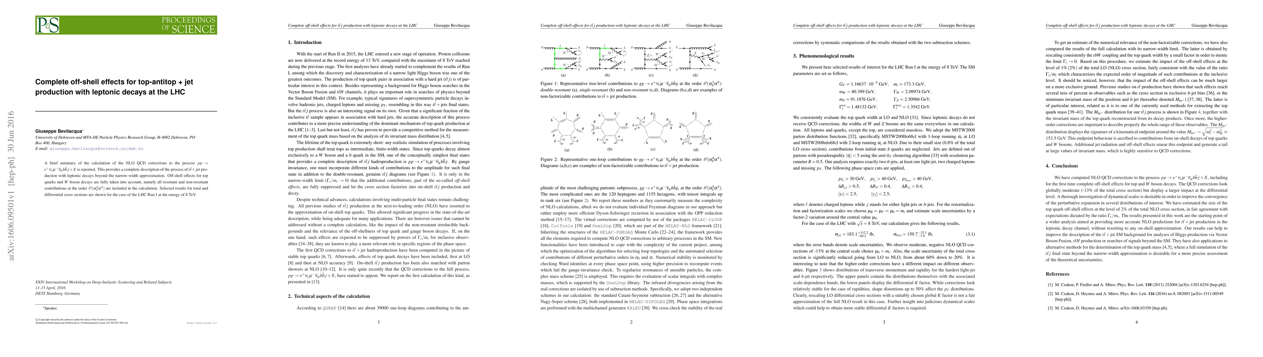 A brief summary of the calculation of the NLO QCD corrections to the process pp -> e+ ve mu- v_mu bb~ j + X is reported. This provides a complete description of the process of t-tbar + jet production with leptonic decays beyond the narrow-width approximation. Off-shell effects for top quarks and W boson decays are fully taken into account, namely all resonant and non-resonant contributions are included in the fixed-order calculation. Selected results for total and differential cross sections are shown for the case of the LHC Run I at the energy of 8 TeV.