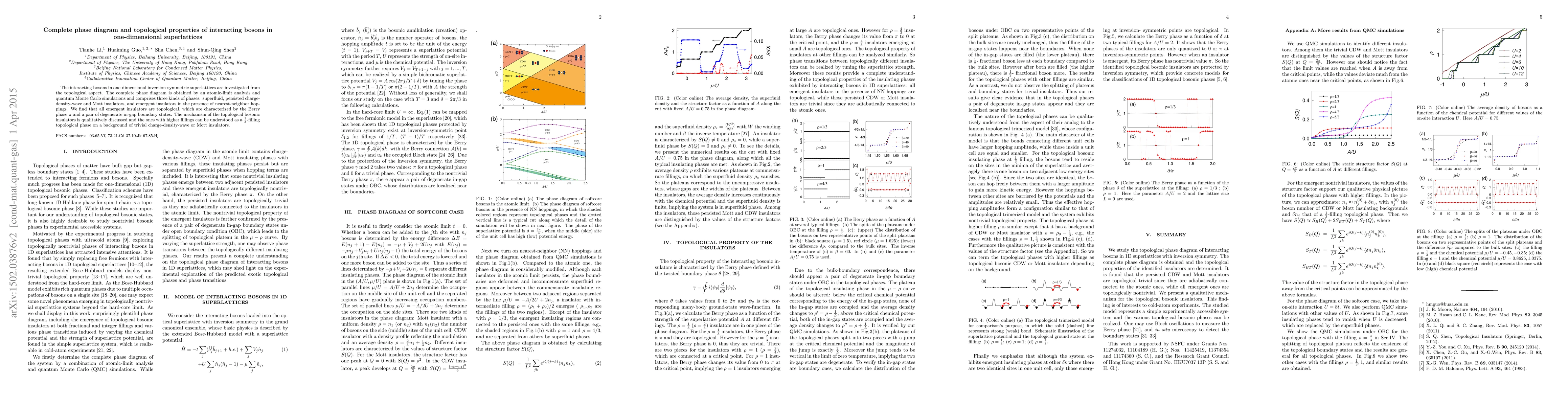This research paper presents a complete phase diagram for interacting bosons in one-dimensional inversion-symmetric superlattices, revealing three distinct phases: superfluid, charge-density-wave, and Mott insulators. It also identifies topological emergent insulators characterized by a Berry phase π and degenerate boundary states, suggesting a $\frac{1}{3}$-filling topological phase over trivial backgrounds.
