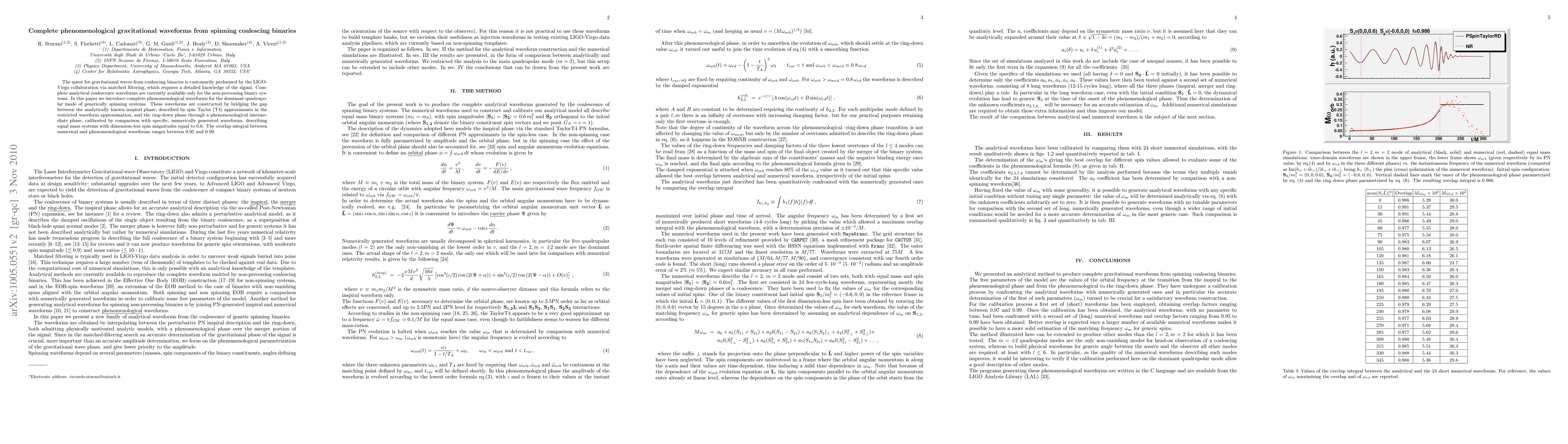 This paper presents complete phenomenological waveforms for spinning coalescing binary systems, bridging the inspiral and ring-down phases with an intermediate calibrated phase, achieving high overlap with numerically generated waveforms. These waveforms enhance the detection capabilities of gravitational wave observatories like LIGO-Virgo.