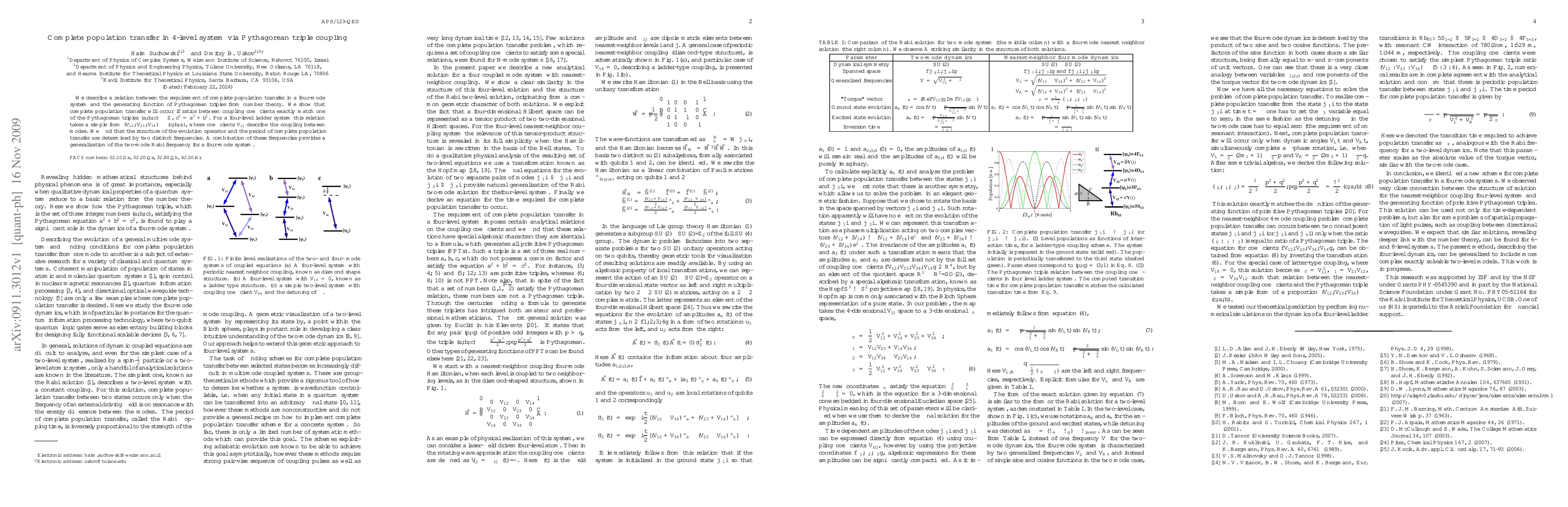 This paper establishes a connection between complete population transfer in a four-level quantum system and Pythagorean triples, demonstrating that matching coupling ratios to these triples ensures perfect transfer. The evolution operator and transfer period are governed by two distinct frequencies, generalizing the two-mode Rabi frequency.
