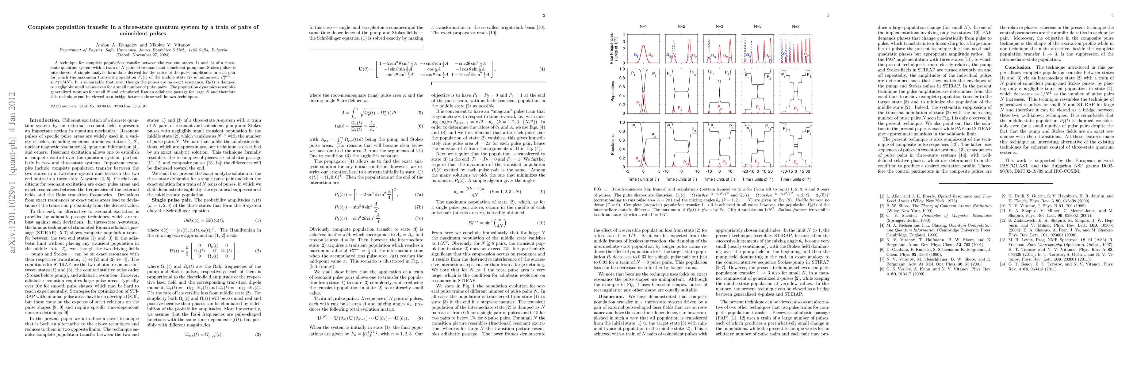 This paper introduces a method for complete population transfer in a three-state quantum system using a train of resonant, coincident pulse pairs, minimizing transient population in the middle state. The technique bridges generalized $\pi$-pulses and stimulated Raman adiabatic passage, achieving negligible middle state population even with a small number of pulse pairs.