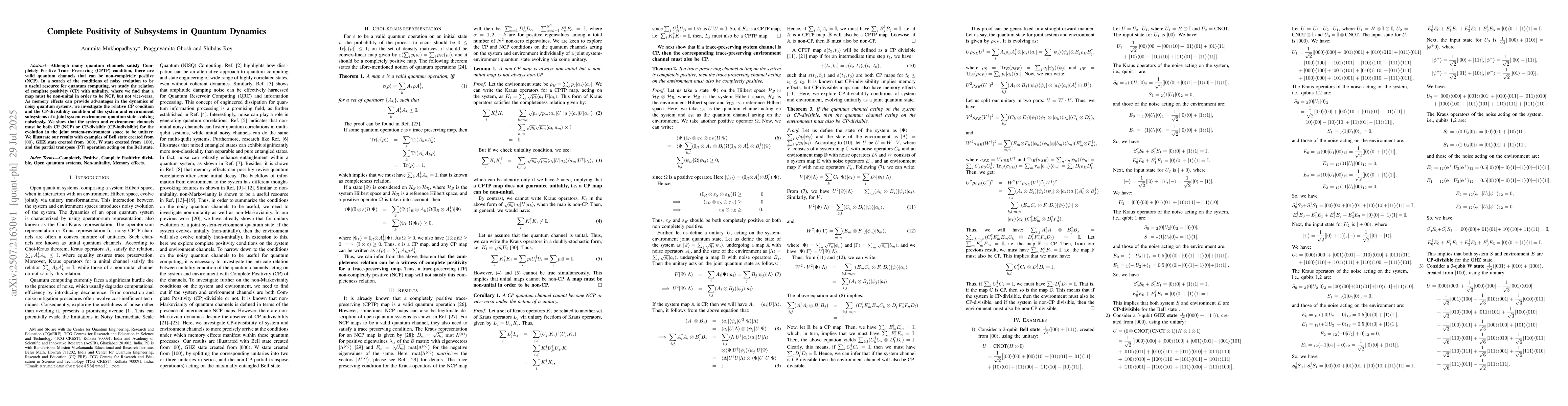 Although many quantum channels satisfy Completely Positive Trace Preserving (CPTP) condition, there are valid quantum channels that can be non-completely positive (NCP). In a search of the conditions of noisy evolution to be a useful resource for quantum computing, we study the relation of complete positivity (CP) with unitality, where we find that a map must be non-unital in order to be NCP, but not vice-versa. As memory effects can provide advantages in the dynamics of noisy quantum systems, we investigate the relative CP condition and the CP-divisibility condition of the system and environment subsystems of a joint system-environment quantum state evolving noiselessly. We show that the system and environment channels must be both CP (NCP) or CP-divisible (CP-indivisible) for the evolution in the joint system-environment space to be unitary. We illustrate our results with examples of Bell state created from $|00\rangle$, GHZ state created from $|000\rangle$, W state created from $|100\rangle$, and the partial transpose (PT) operation acting on the Bell state.
