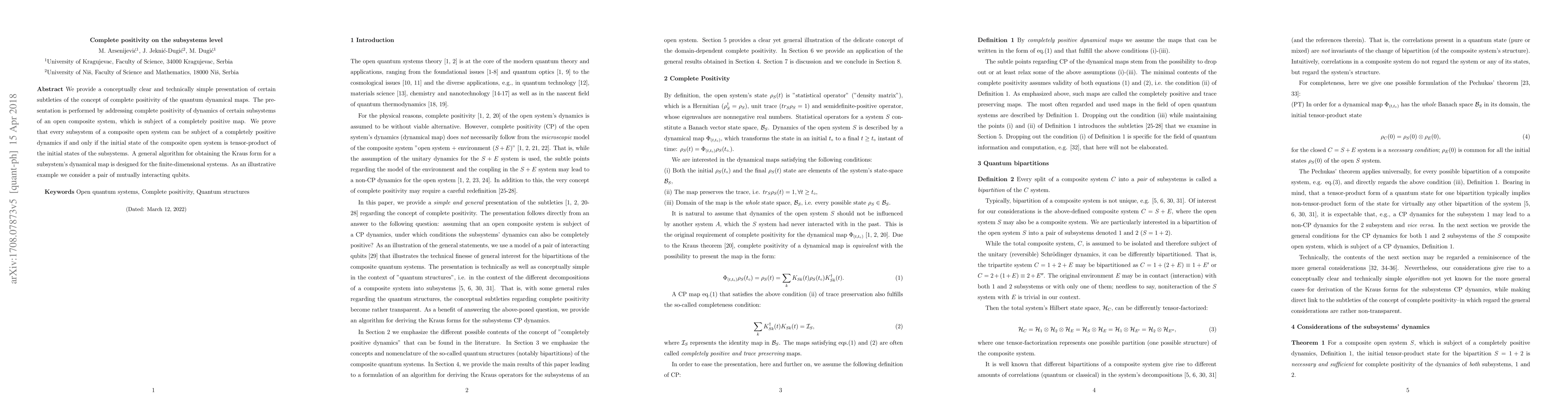 We consider complete positivity of dynamics regarding subsystems of an open composite quantum system, which is subject of a completely positive dynamics. By "completely positive dynamics", we assume the dynamical maps called the completely positive and trace preserving maps, with the constraint that domain of the map is the whole Banach space of the system's density matrices. We provide a technically simple and conceptually clear proof for the subsystems' completely positive dynamics. Actually, we prove that every subsystem of a composite open system can be subject of a completely positive dynamics if and only if the initial state of the composite open system is tensor-product of the initial states of the subsystems. An algorithm for obtaining the Kraus form for the subsystem's dynamical map is provided. As an illustrative example we consider a pair of mutually interacting qubits. The presentation is performed such that a student with the proper basic knowledge in quantum mechanics should be able to reproduce all the steps of the calculations.