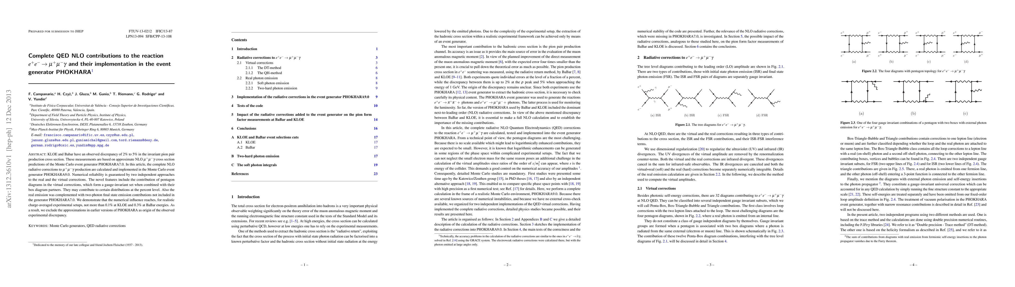 KLOE and Babar have an observed discrepancy of 2% to 5% in the invariant pion pair production cross section. These measurements are based on approximate NLO $ \mu^+ \mu^- \gamma $ cross section predictions of the Monte Carlo event generator PHOKHARA7.0. In this article, the complete NLO radiative corrections to $ \mu^+ \mu^- \gamma $ production are calculated and implemented in the Monte Carlo event generator PHOKHARA9.0. Numerical reliability is guaranteed by two independent approaches to the real and the virtual corrections. The novel features include the contribution of pentagon diagrams in the virtual corrections, which form a gauge-invariant set when combined with their box diagram partners. They may contribute to certain distributions at the percent level. Also the real emission was complemented with two-photon final state emission contributions not included in the generator PHOKHARA7.0. We demonstrate that the numerical influence reaches, for realistic charge-averaged experimental setups, not more than 0.1% at KLOE and 0.3% at BaBar energies. As a result, we exclude the approximations in earlier versions of PHOKHARA as origin of the observed experimental discrepancy.