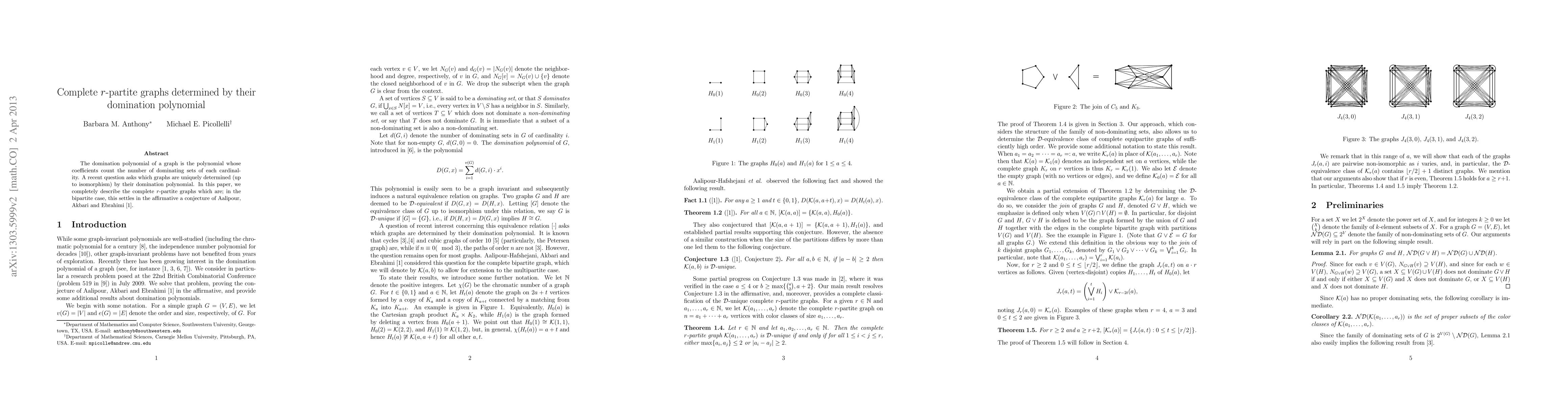 The paper uses graph theory, specifically focusing on domination polynomials of graphs to determine which complete r-partite graphs are uniquely determined by their domination polynomials.