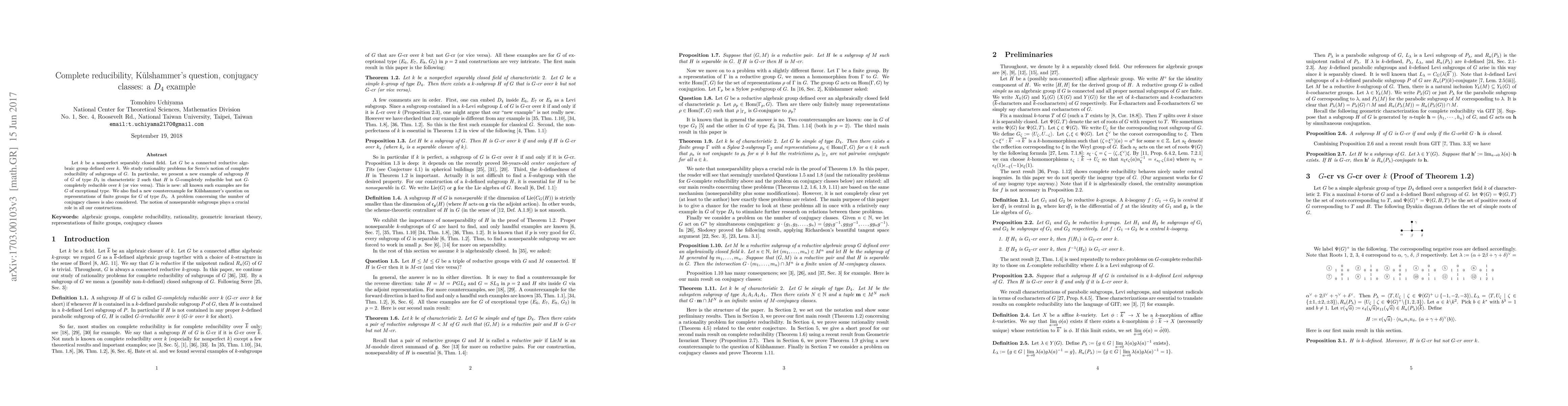 This paper investigates rationality issues regarding Serre's complete reducibility of subgroups in a connected reductive algebraic group $G$ defined over a nonperfect separably closed field $k$. It presents a new example of a subgroup $H$ of type $D_4$ in characteristic $2$ that illustrates the distinction between $G$-complete reducibility over $k$ and over the field, addressing Kulshammer's question on representations of finite groups in the process.