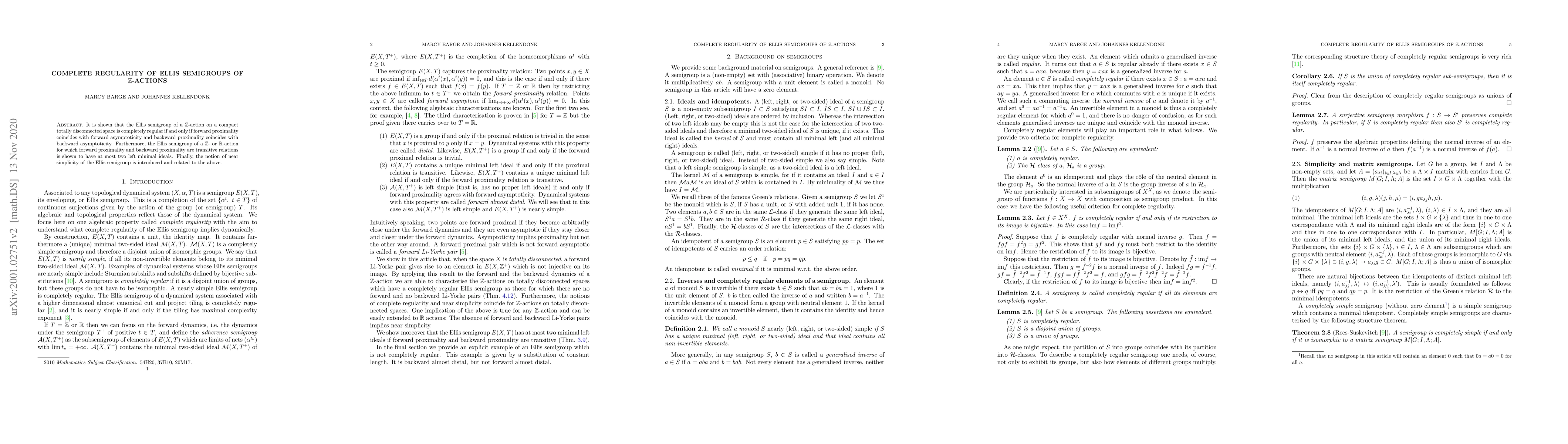 The paper establishes a characterization of complete regularity for Ellis semigroups of $\mathbb{Z}$-actions, linking it to the transitivity of proximality relations and the structure of minimal ideals.