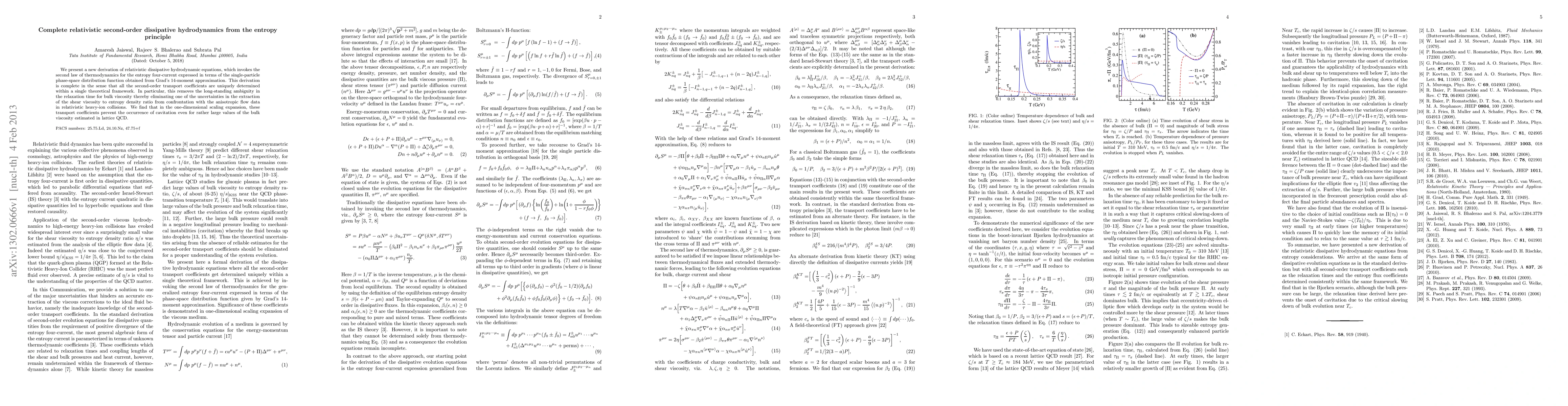 We present a new derivation of relativistic dissipative hydrodynamic equations, which invokes the second law of thermodynamics for the entropy four-current expressed in terms of the single-particle phase-space distribution function obtained from Grad's 14-moment approximation. This derivation is complete in the sense that all the second-order transport coefficients are uniquely determined within a single theoretical framework. In particular, this removes the long-standing ambiguity in the relaxation time for bulk viscosity thereby eliminating one of the uncertainties in the extraction of the shear viscosity to entropy density ratio from confrontation with the anisotropic flow data in relativistic heavy-ion collisions. We find that in the one-dimensional scaling expansion, these transport coefficients prevent the occurrence of cavitation even for rather large values of the bulk viscosity estimated in lattice QCD.