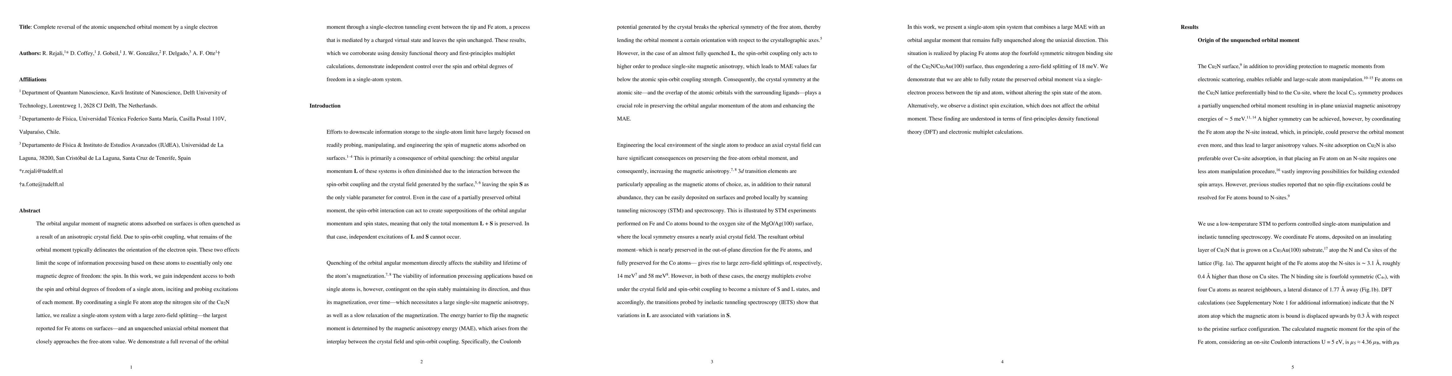 This research demonstrates independent control over the spin and orbital moments of a single Fe atom on a Cu$_2$N surface, achieving a complete reversal of the orbital moment via a single-electron tunneling event, while leaving the spin unchanged. These findings, supported by theoretical calculations, show potential for advanced information processing based on both magnetic degrees of freedom.