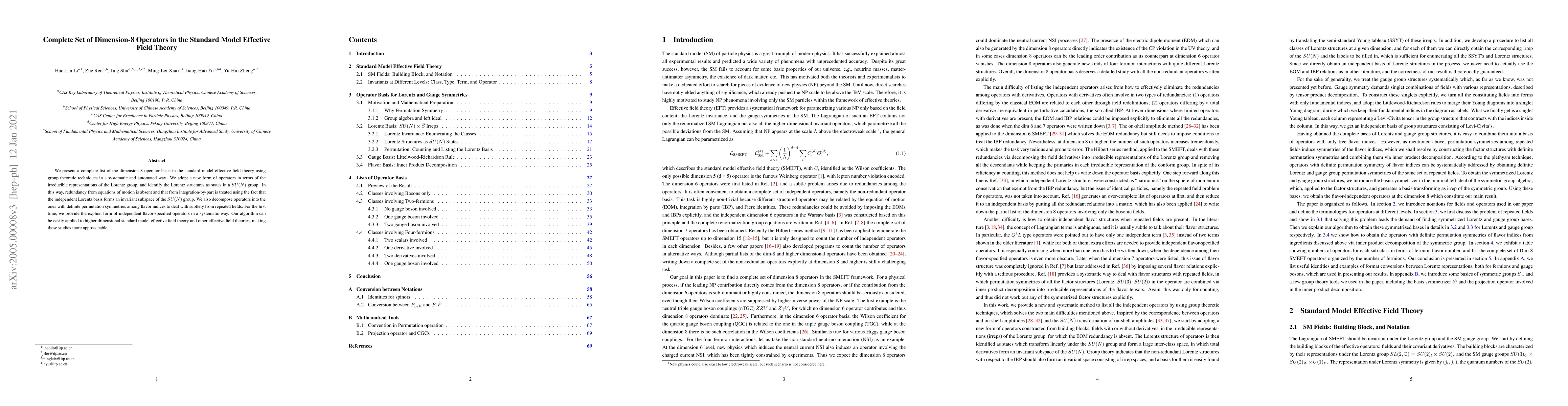 This paper systematically presents a complete set of dimension-8 operators in the Standard Model Effective Field Theory (SMEFT) using group theory. The authors utilize irreducible representations of the Lorentz group and $SU(N)$ symmetry to eliminate redundancy and explicitly provide independent flavor-specified operators, facilitating broader applications to higher-dimensional SMEFT and other effective field theories.