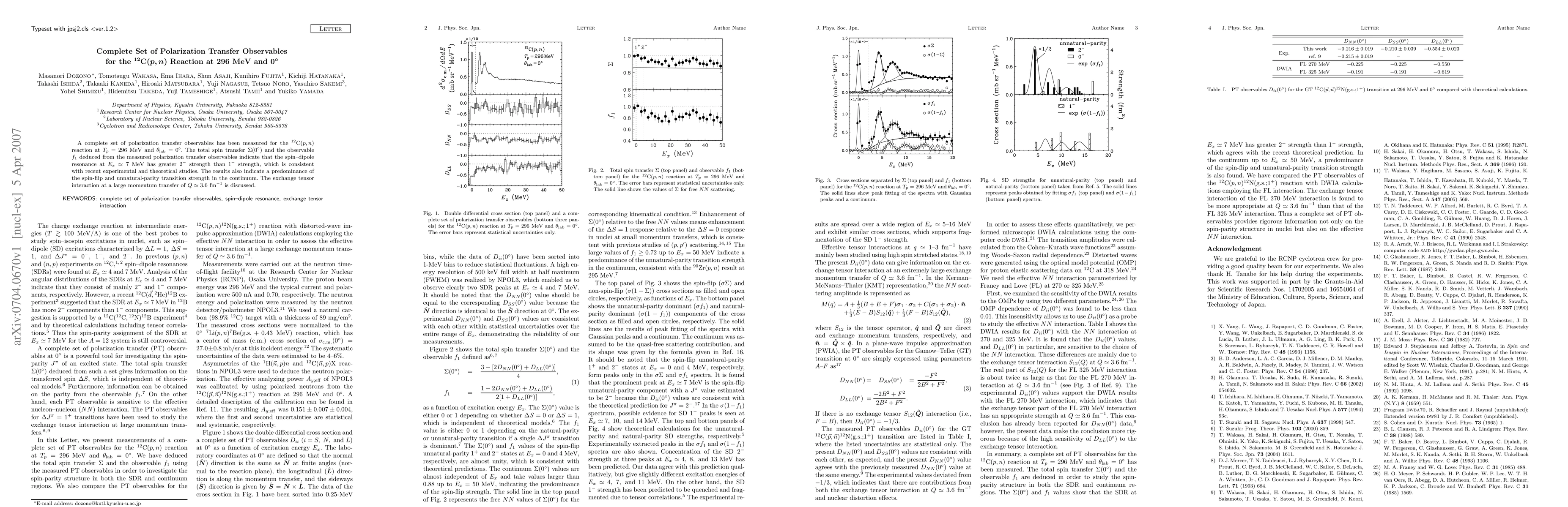 A complete set of polarization transfer observables has been measured for the $^{12}{\rm C}(p,n)$ reaction at $T_p=296 {\rm MeV}$ and $\theta_{\rm lab}=0^{\circ}$. The total spin transfer $\Sigma(0^{\circ})$ and the observable $f_1$ deduced from the measured polarization transfer observables indicate that the spin--dipole resonance at $E_x \simeq 7 {\rm MeV}$ has greater $2^-$ strength than $1^-$ strength, which is consistent with recent experimental and theoretical studies. The results also indicate a predominance of the spin-flip and unnatural-parity transition strength in the continuum. The exchange tensor interaction at a large momentum transfer of $Q \simeq 3.6 {\rm fm}^{-1}$ is discussed.
