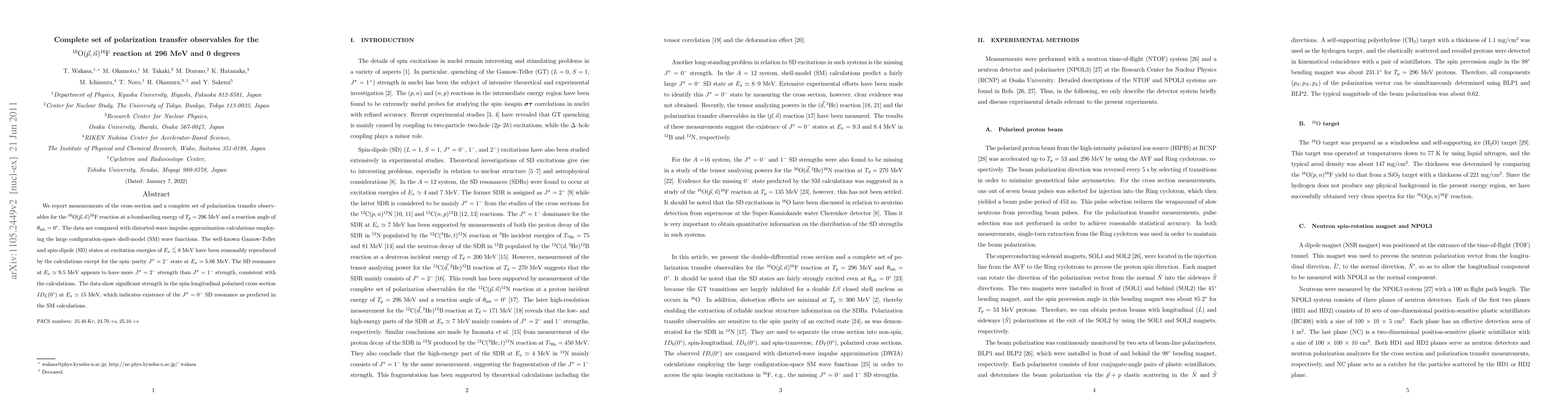 This paper reports detailed measurements of the ${}^{16}{\rm O}(\vec{p},\vec{n}){}^{16}{\rm F}$ reaction at 296 MeV, including a complete set of polarization transfer observables. The results are compared to theoretical calculations, revealing good agreement for known Gamow-Teller and spin-dipole states, except for the $J^{\pi}$ = $2^-$ state at 5.86 MeV, and indicating a $J^{\pi}$ = $0^-$ spin-longitudinal polarized cross section at around 15 MeV.