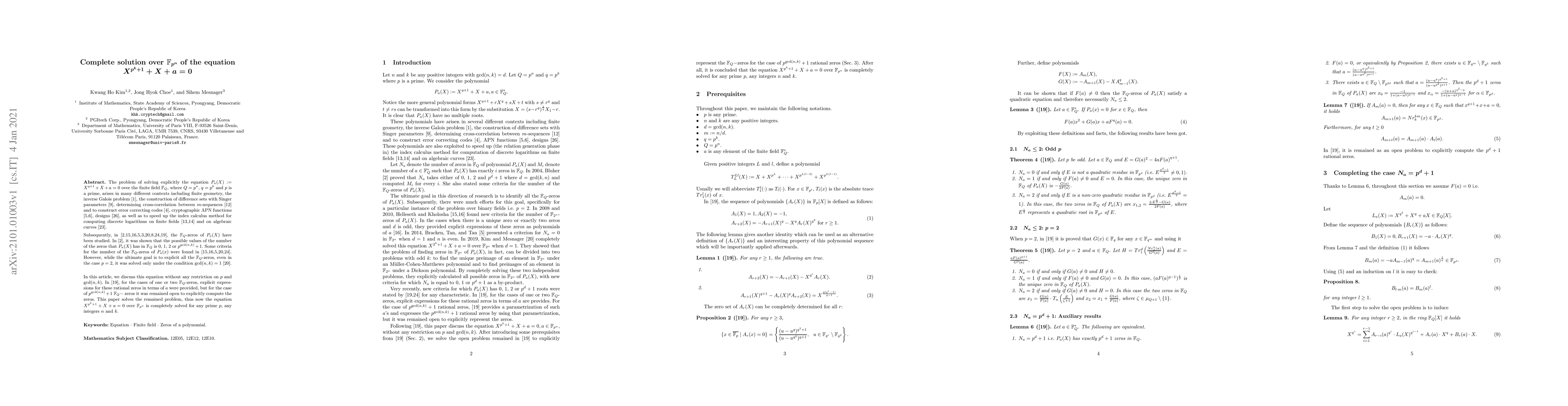 The paper solves a long-standing problem in finite field mathematics by explicitly finding solutions to the equation $X^{p^k+1}+X+a=0$ over $oxed{ ext{GF}{p^n}}$, resolving the case for any prime $p$, integers $n$ and $k$.