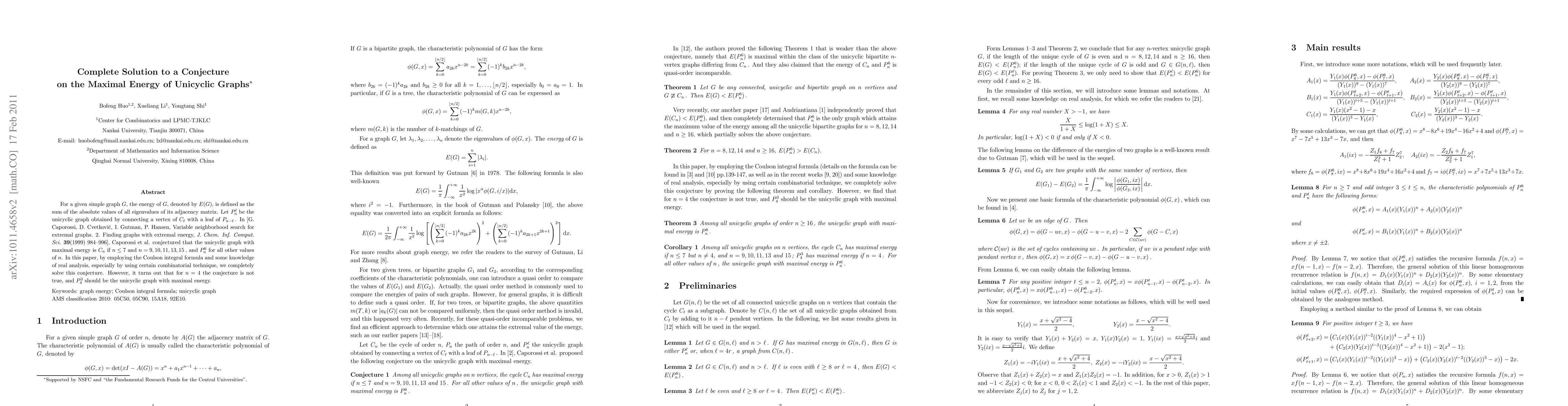 This paper resolves a conjecture regarding the maximal energy of unicyclic graphs, proving that the graph with the highest energy is $C_n$ for $n\leq 7$ and $n=9,10,11,13,15$, and $P_n^6$ for other values, except for $n=4$ where $P_4^3$ has the maximal energy.