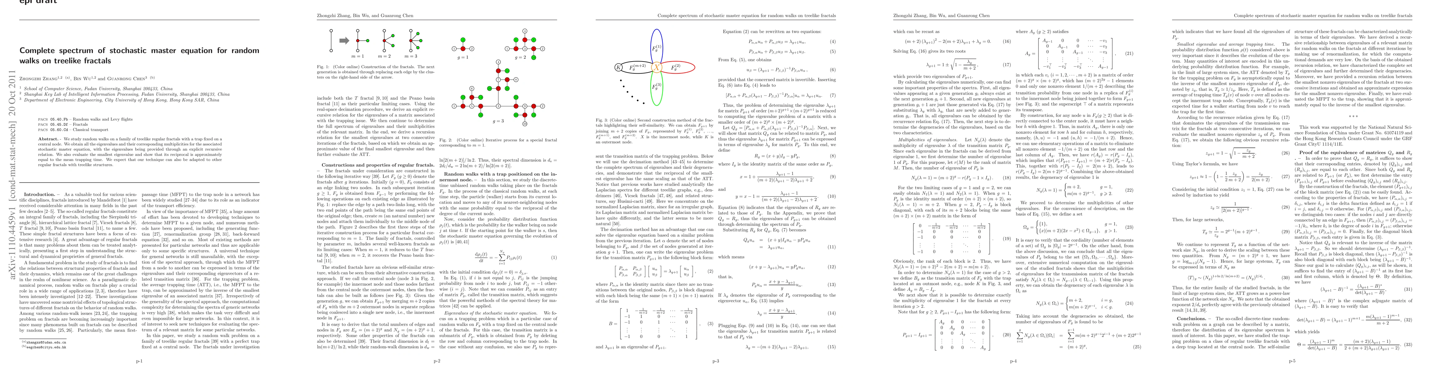 Researchers developed a method to calculate eigenvalues for random walks on treelike fractals, finding that the reciprocal of the smallest eigenvalue is approximately equal to the mean trapping time.